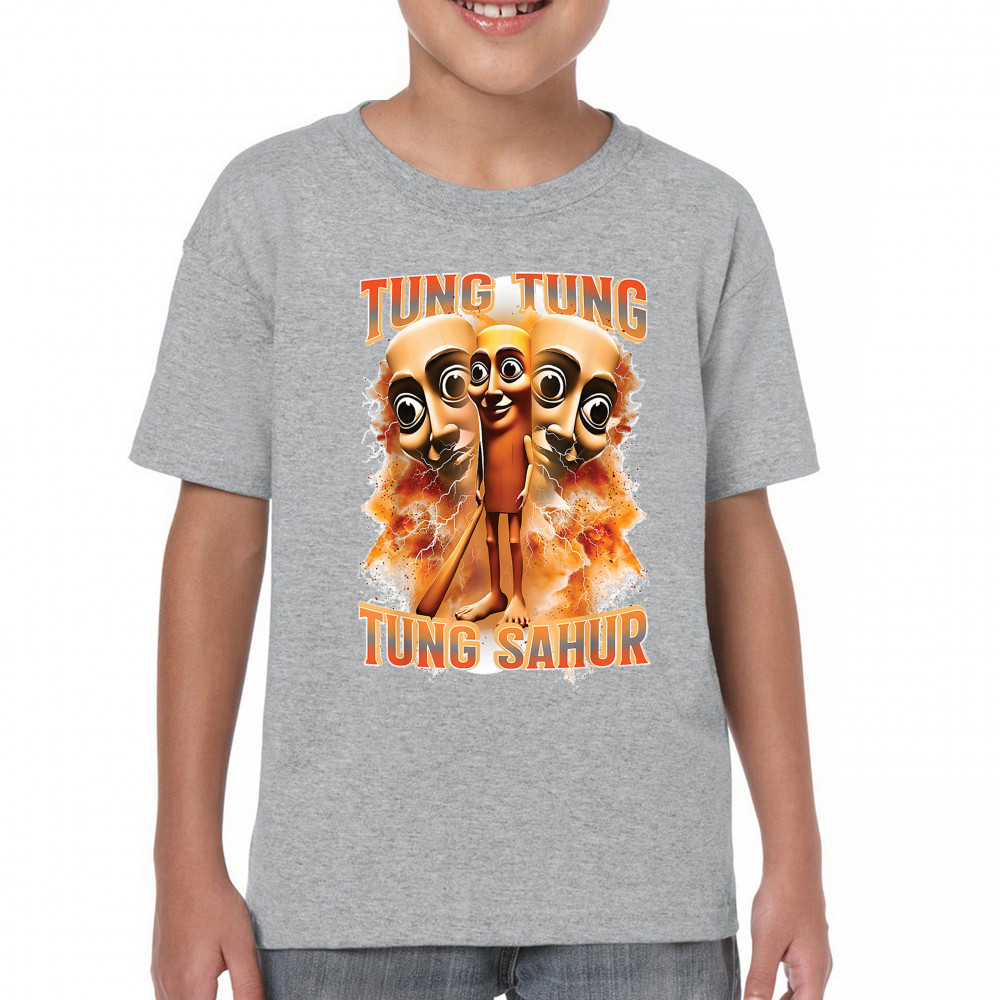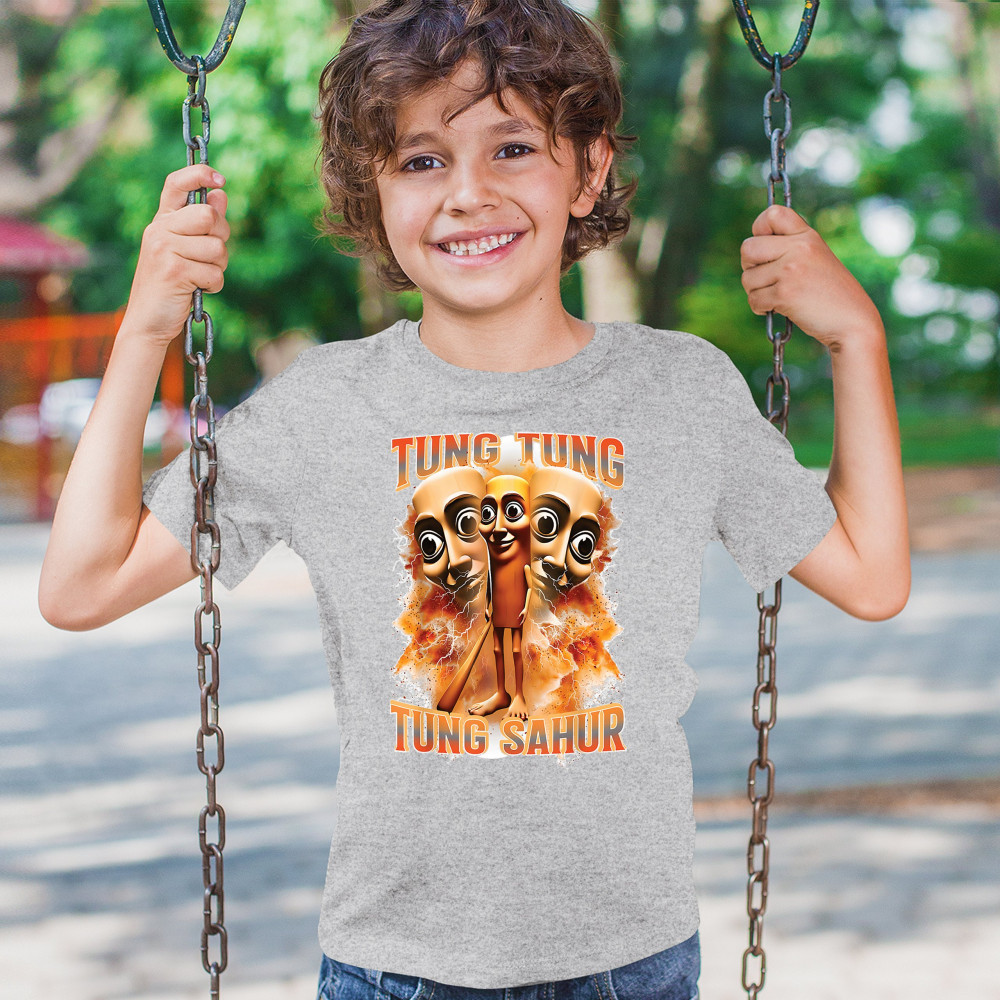 Tung Tung Tung Sahur design blends cursed-core, meme humor, Gen Z fashion, ironic style, and viral brainrot absurdity into one wild tee.