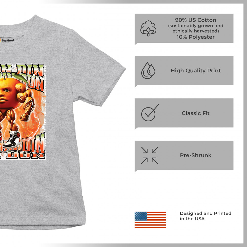 Meet U Din Din Din Din Dun Ma Din Din Din Dun—a jacked-up citrus monstrosity marching straight out of brainrot hell. This design fuses cursed fruit humor, muscle-core absurdity, weirdcore meme style, and TikTok chaos into one deranged fashion statement. Built for meme heads, gym rats with irony, and Gen Z absurdists.
