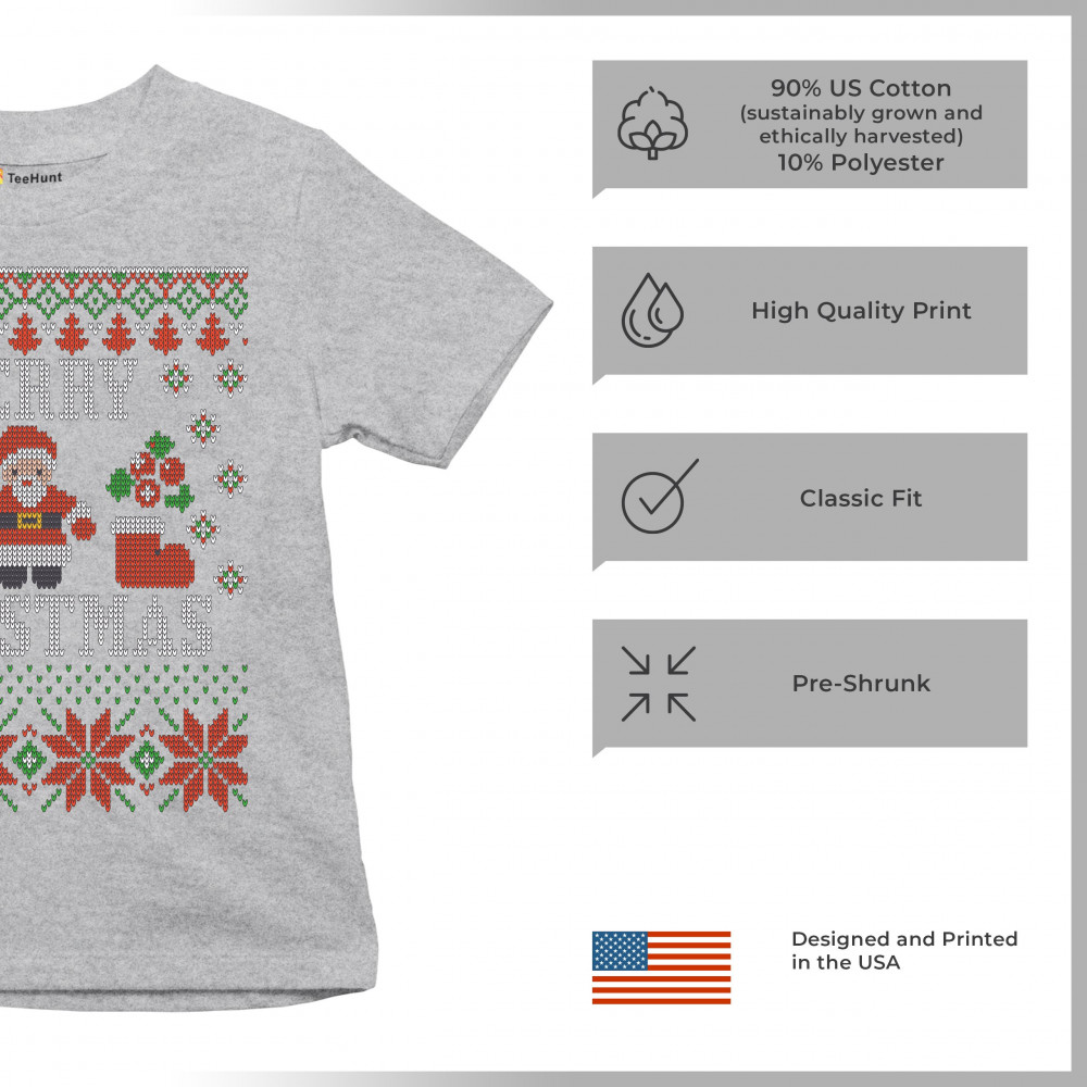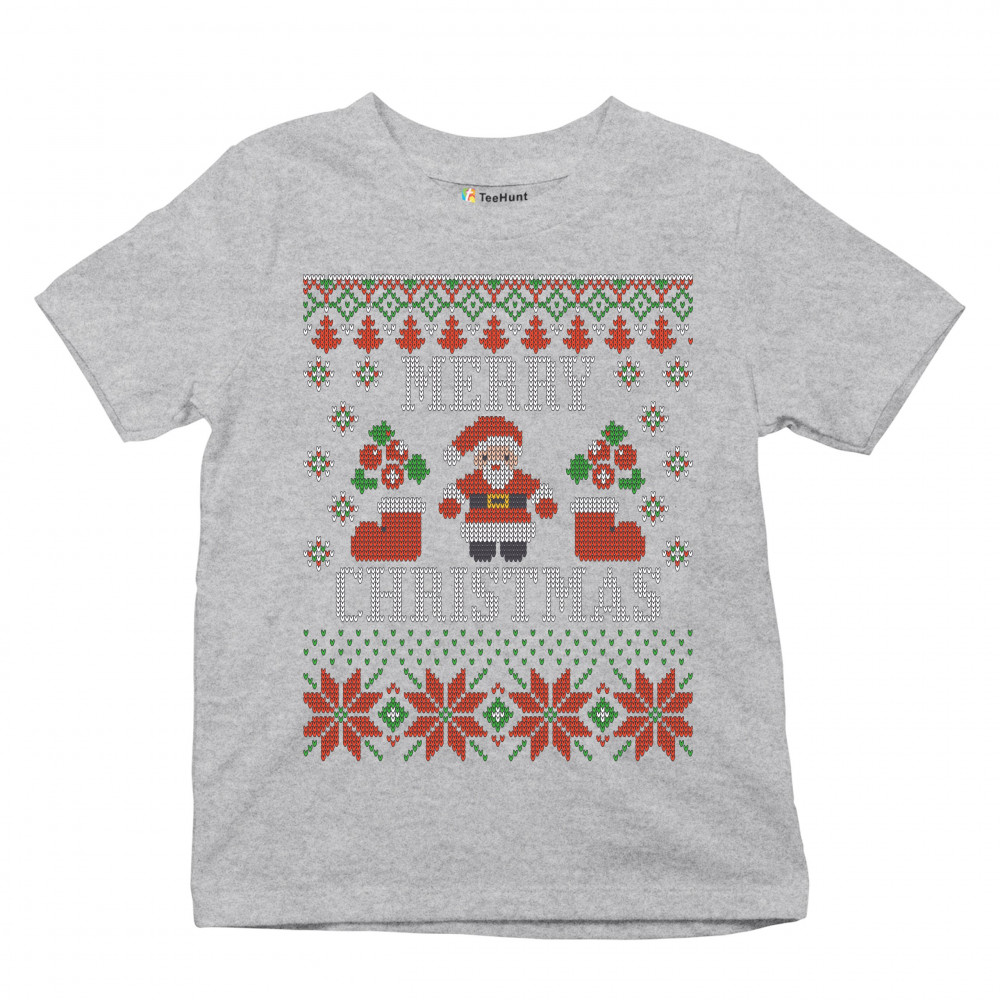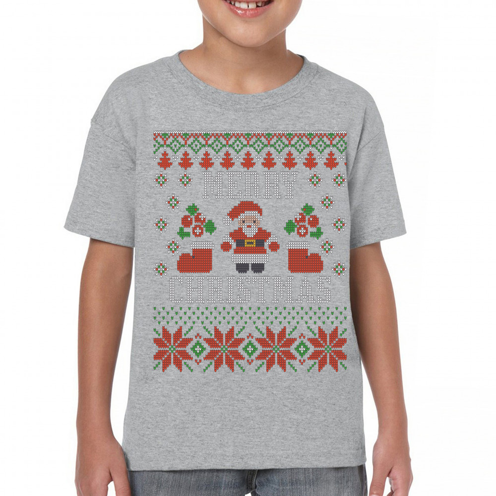 UGLY SWEATER SANTA CLAUS youth t-shirt let it snow christmas jingle bells kids gray