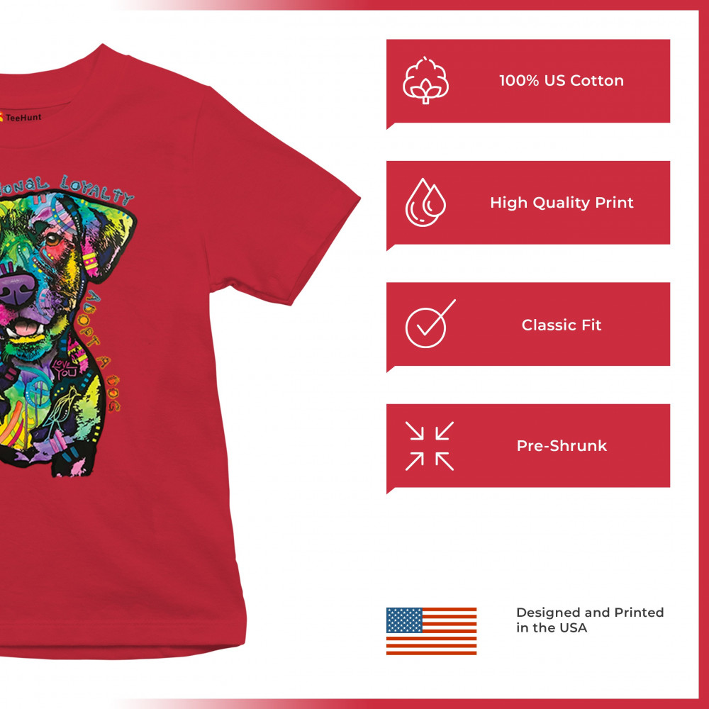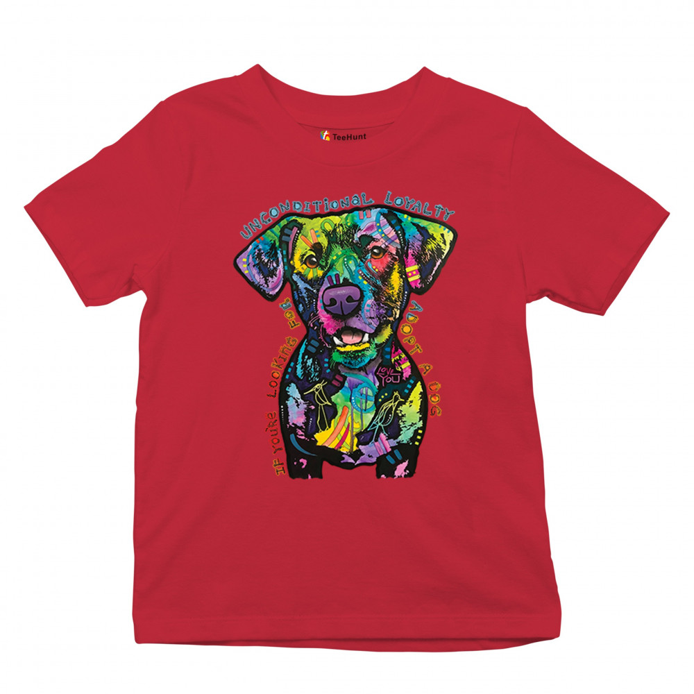 UNCONDITIONAL LOYALTY youth t-shirt adopt a dog dean russo pets kids red