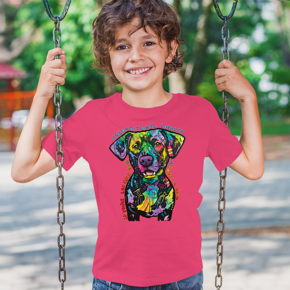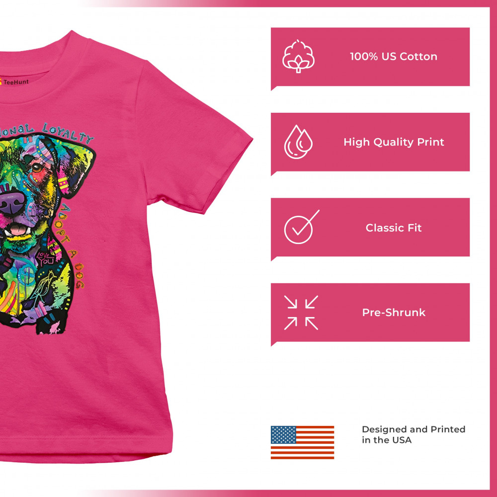 UNCONDITIONAL LOYALTY youth t-shirt adopt a dog dean russo pets kids pink