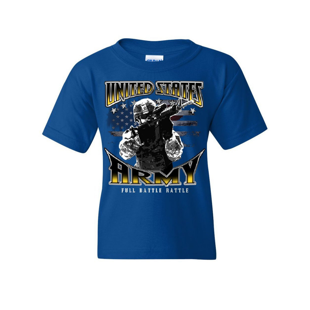 UNITED STATES ARMY FULL BATTLE RATTLE united states army youth t-shirt american soldier full battle rattle kids tee royal blue