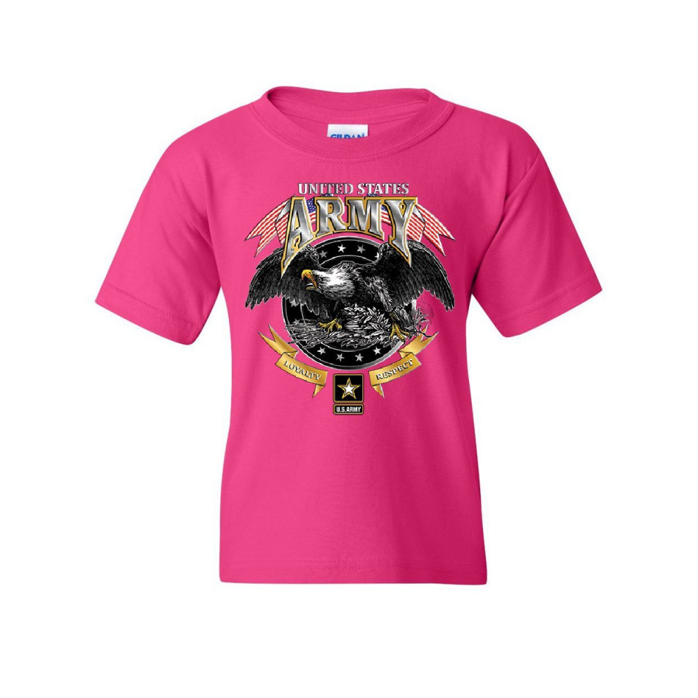 UNITED STATES ARMY youth t-shirt loyalty respect bald eagle pow mia kids tee pink