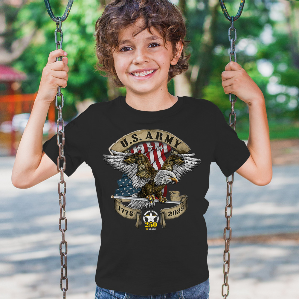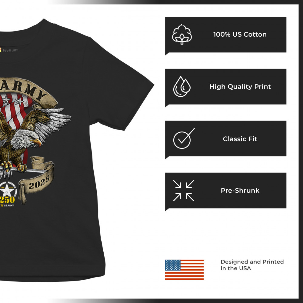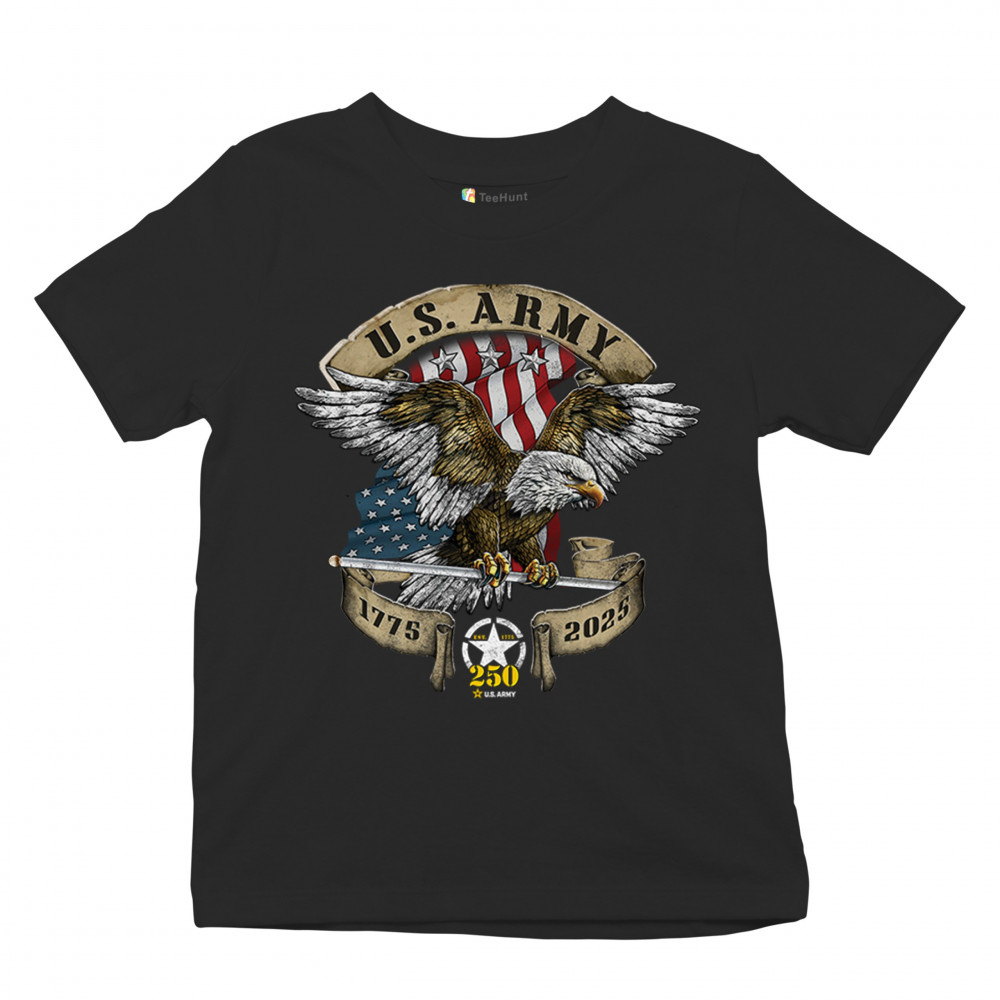 Celebrate the U.S. Army’s 250th Anniversary with patriotic eagle art, Army apparel, Veterans Day pride, and American freedom tribute.