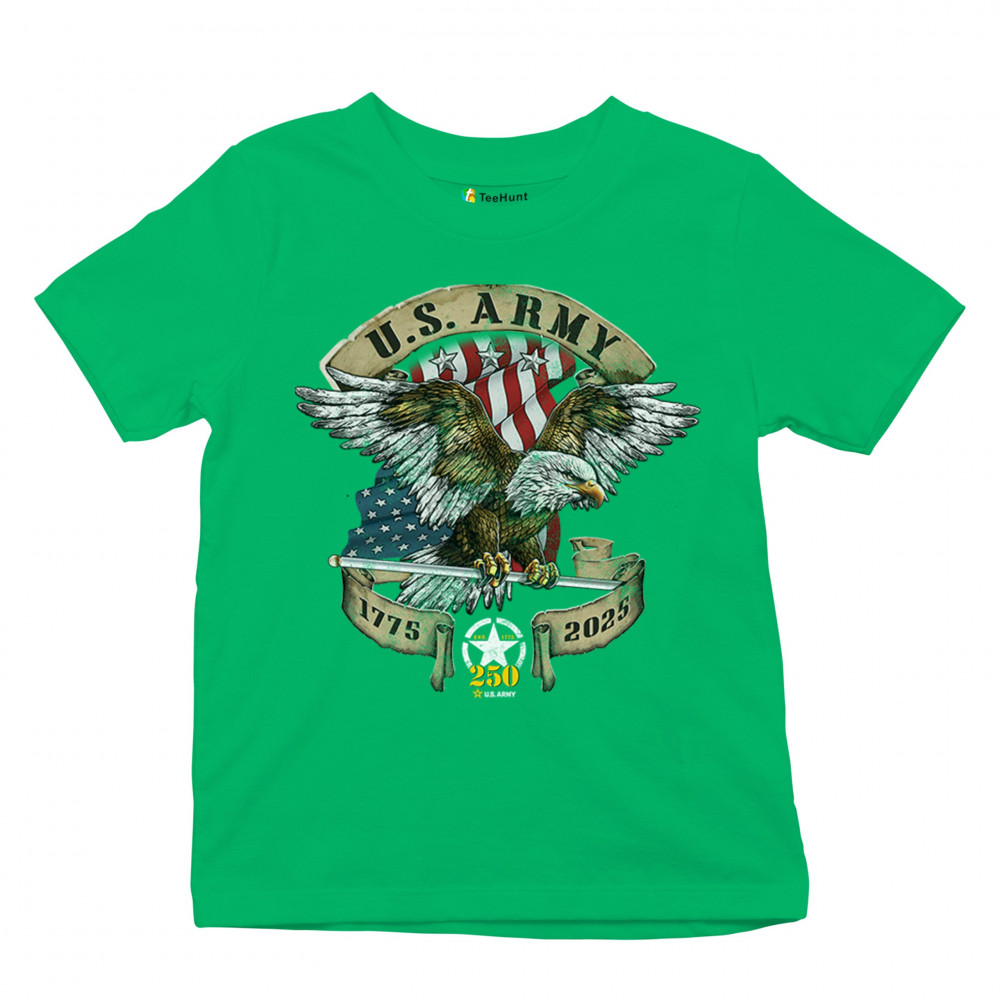 Celebrate the U.S. Army’s 250th Anniversary with patriotic eagle art, Army apparel, Veterans Day pride, and American freedom tribute.