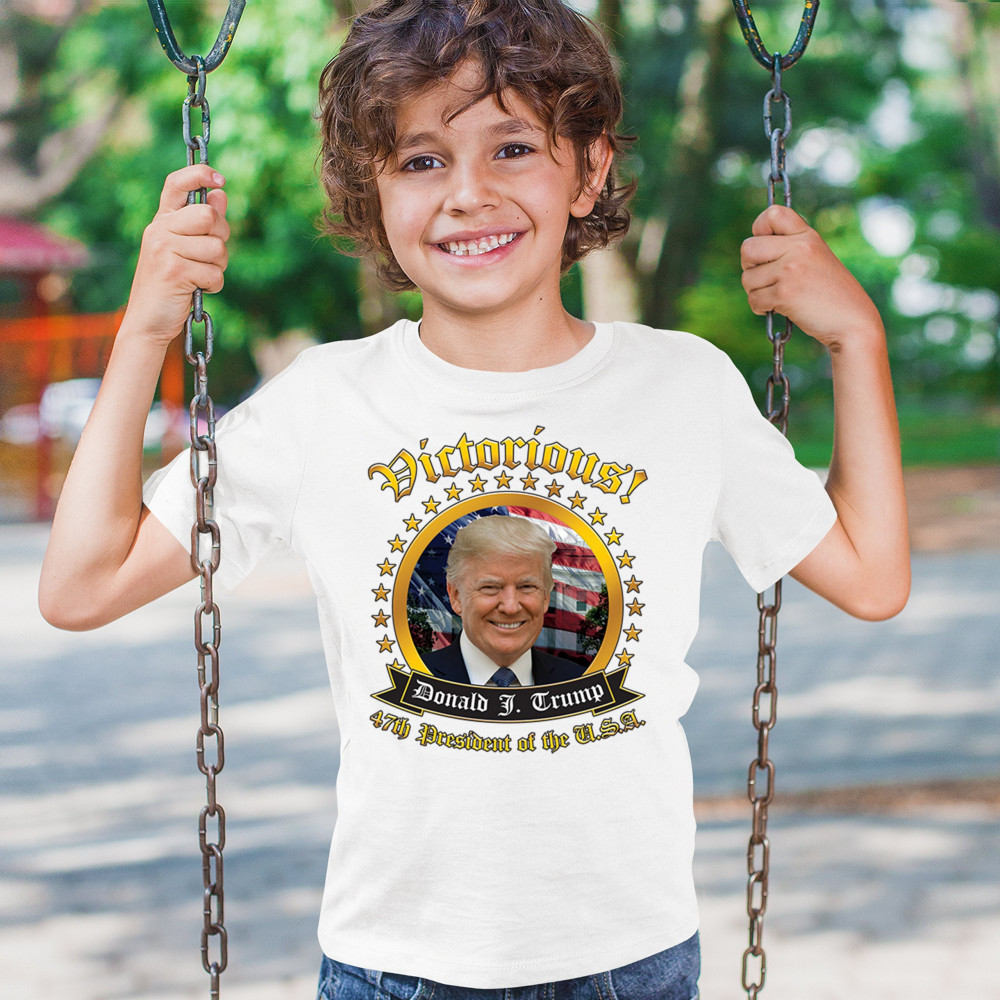 Showcase your support for Trump as the 47th President with this "Victorious" design. Perfect for patriots, America First advocates, and Red Wave supporters.