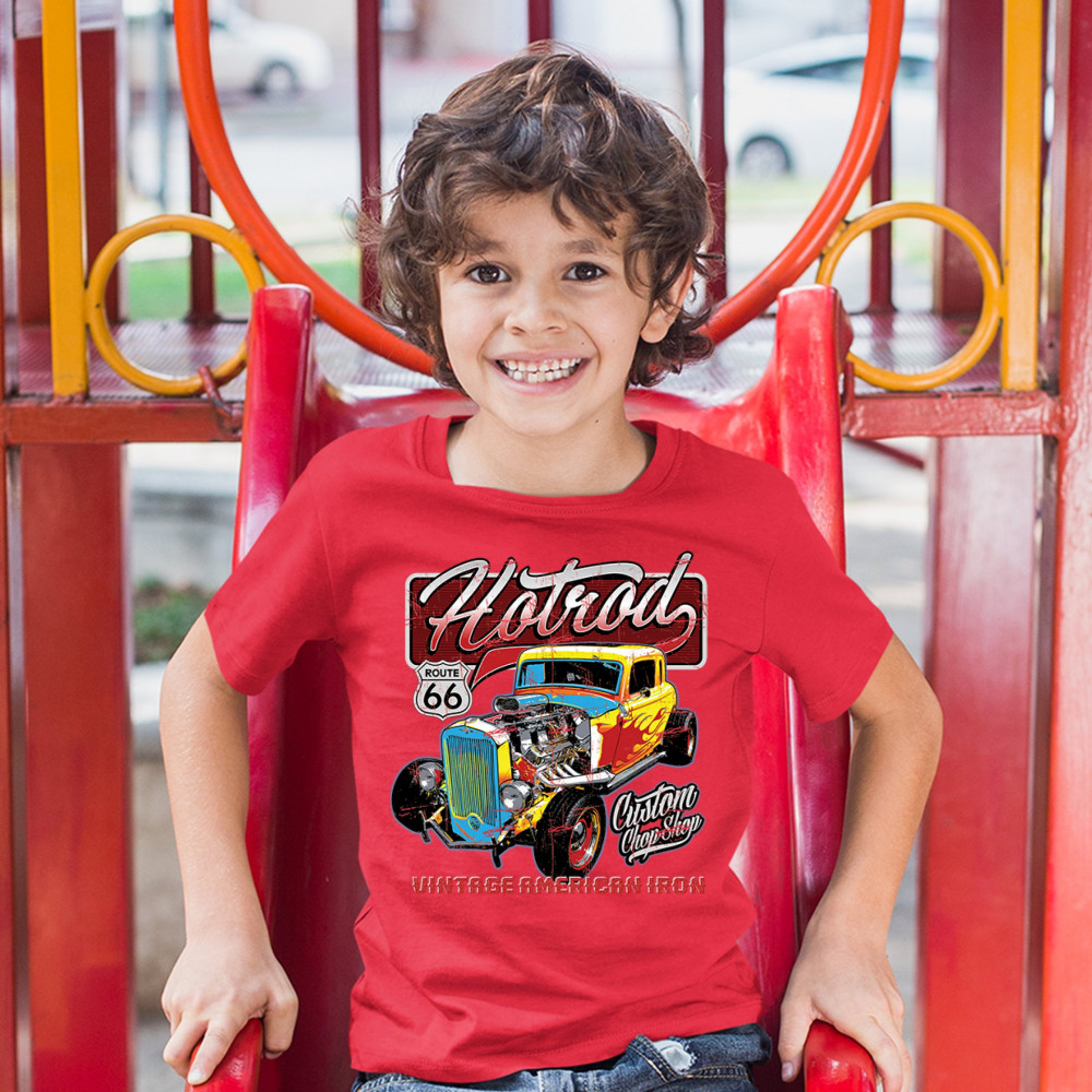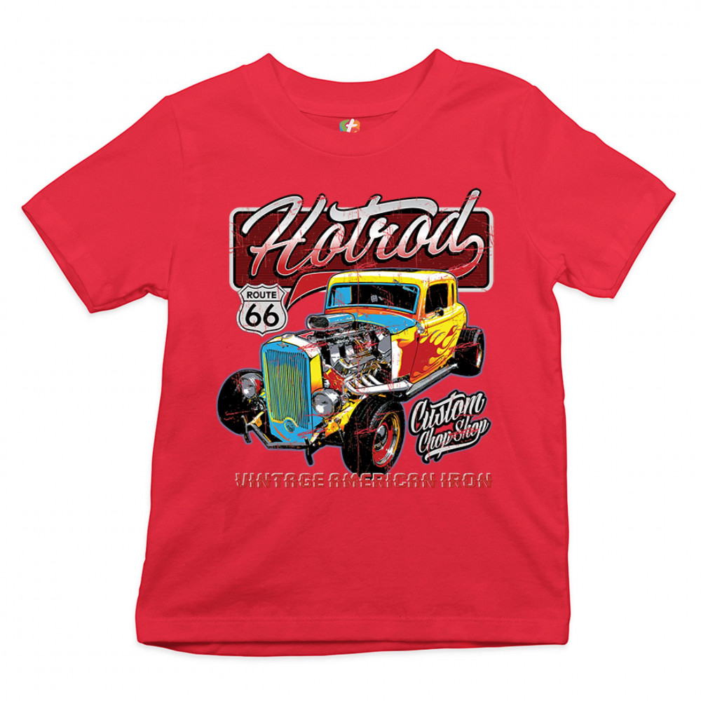 VINTAGE AMERICAN IRON youth t-shirt hot rod route 66 retro racing kids red