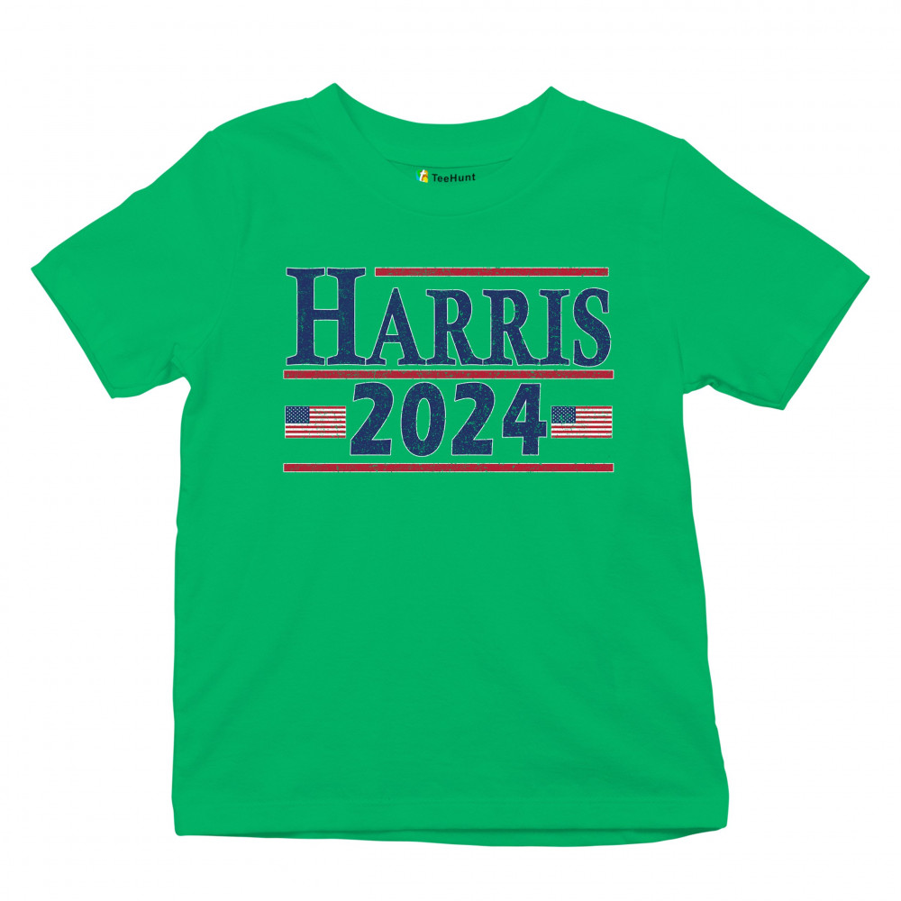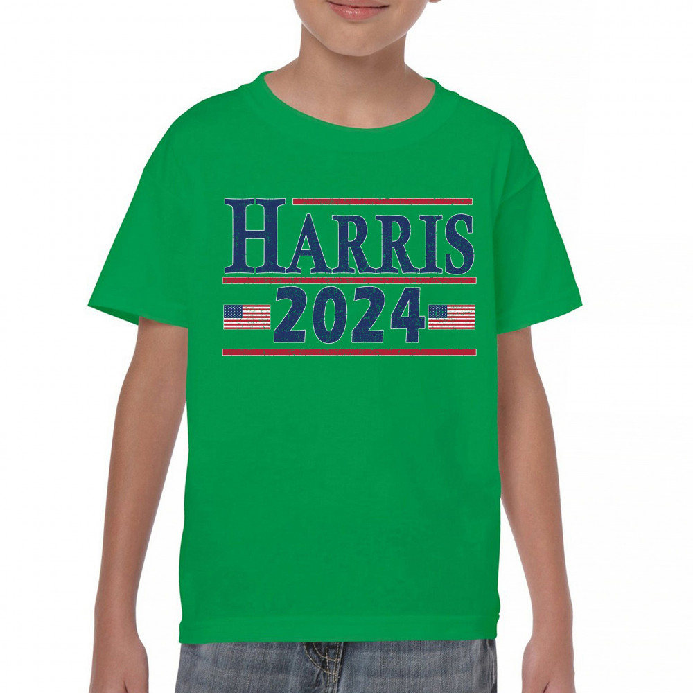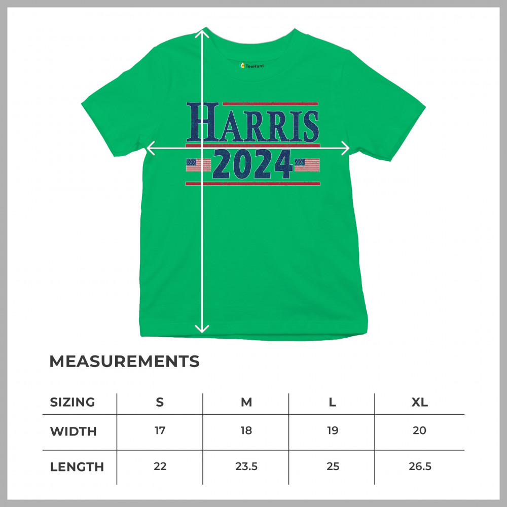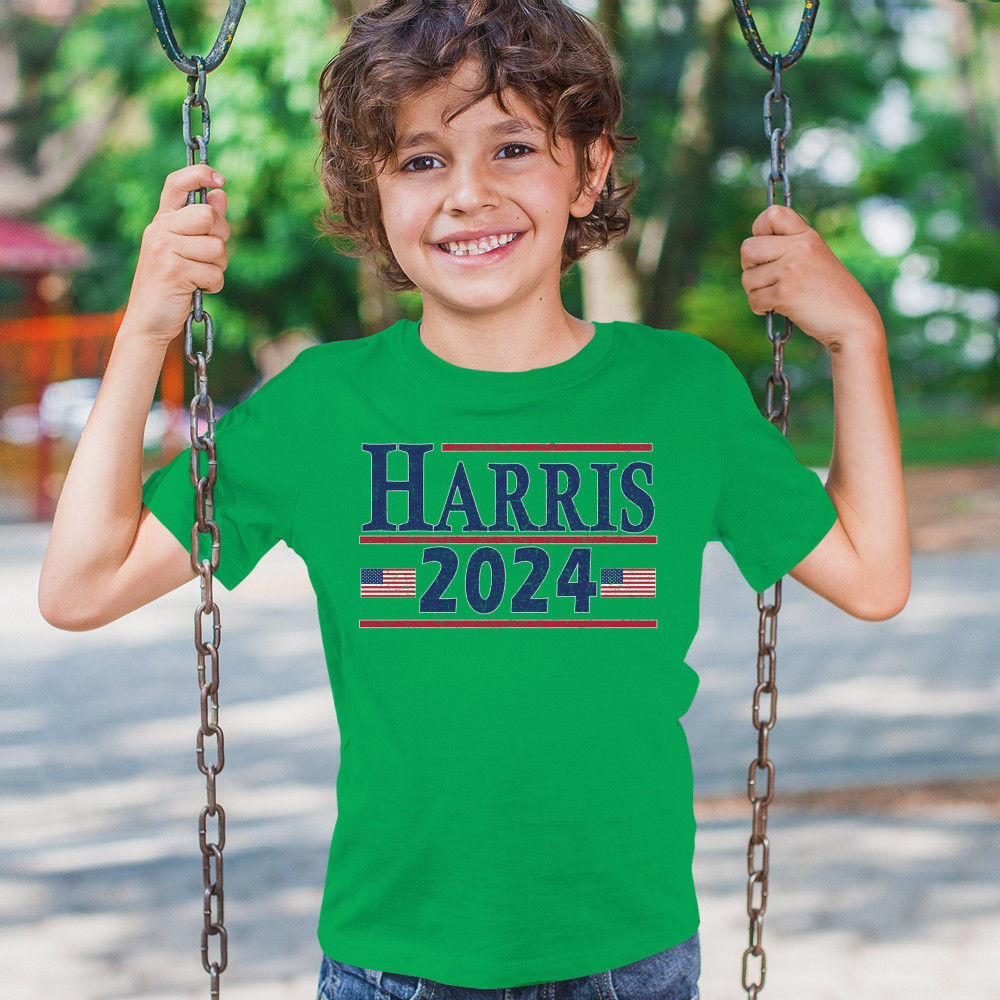 Show your support for Kamala Harris with this bold "Harris 2024" t-shirt, featuring American flags. Perfect for rallies and events. Join the movement today!