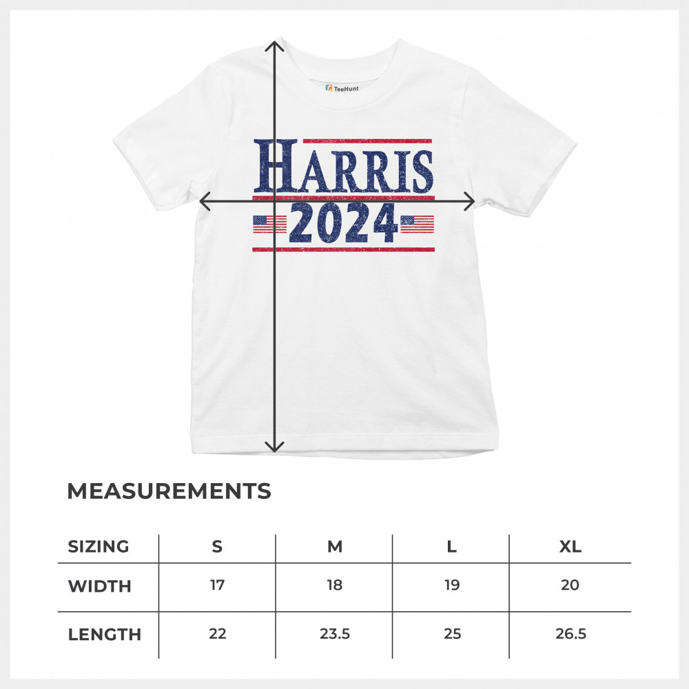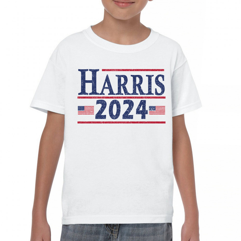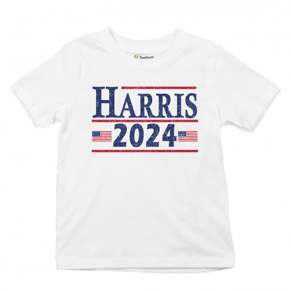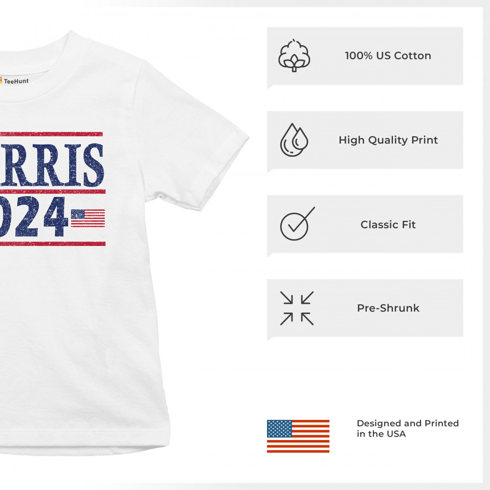 Show your support for Kamala Harris with this bold "Harris 2024" t-shirt, featuring American flags. Perfect for rallies and events. Join the movement today!