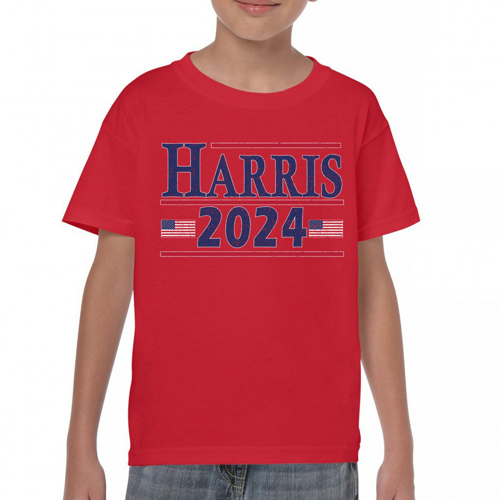 Show your support for Kamala Harris with this bold "Harris 2024" t-shirt, featuring American flags. Perfect for rallies and events. Join the movement today!