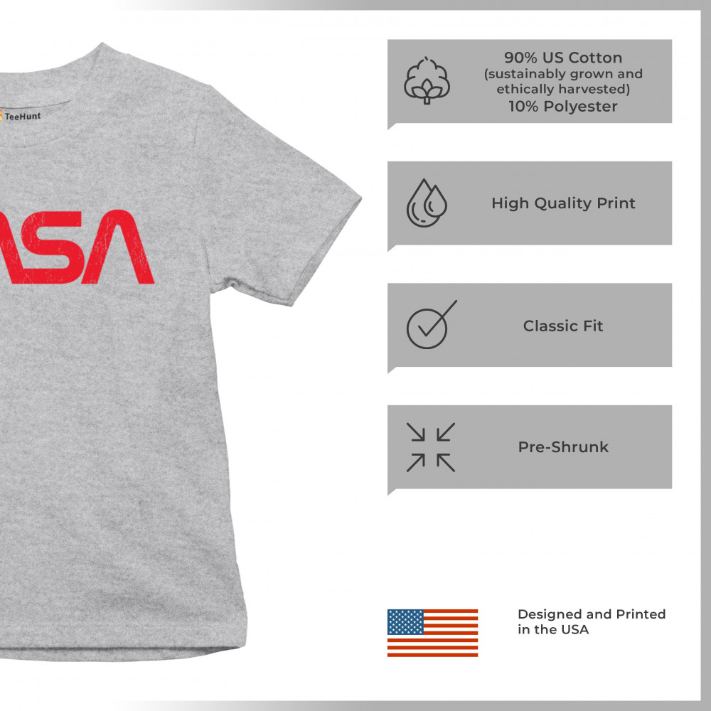 Vintage NASA worm logo shirt celebrates America’s cosmic journey, Apollo legacy, rocket launches, and the spirit of space exploration.