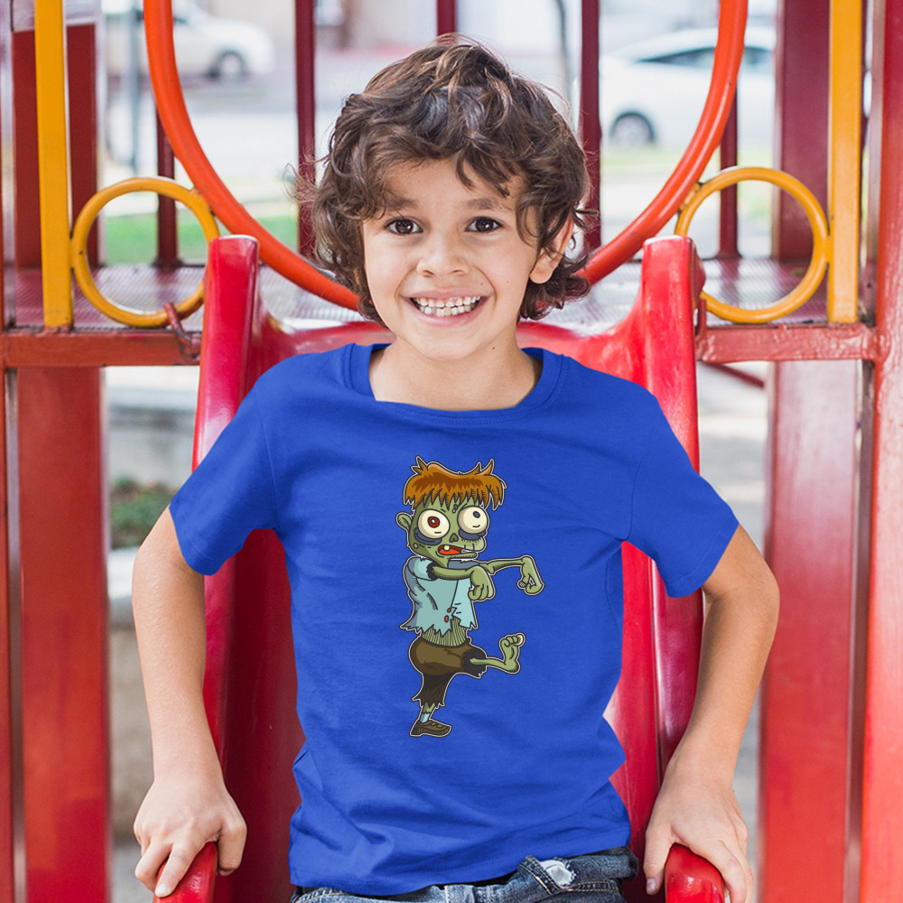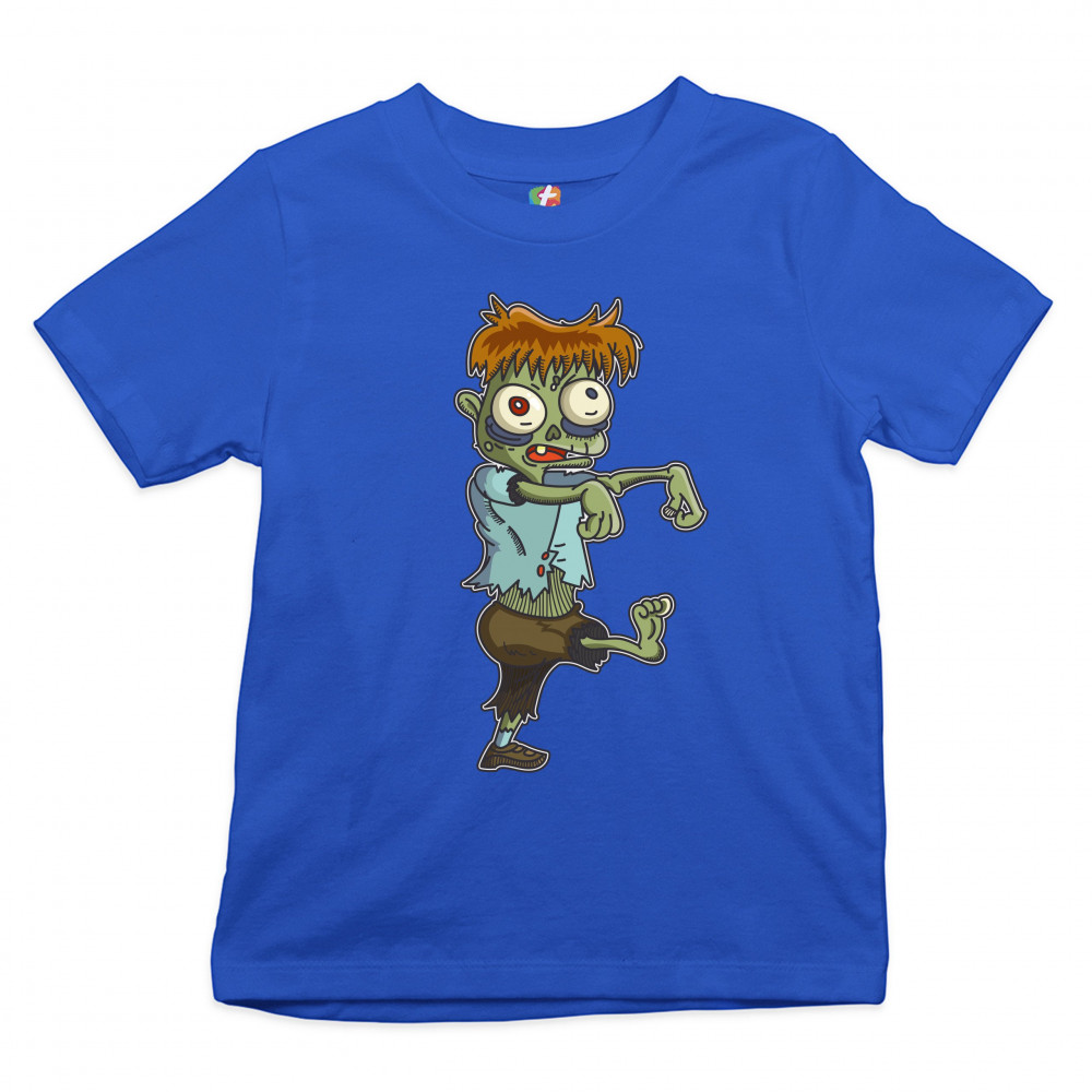WALKING ZOMBIE youth t-shirt eat brains halloween spooky funny undead kids royal blue