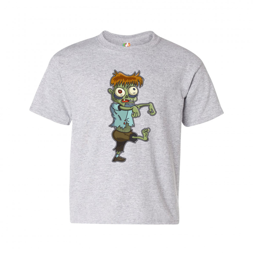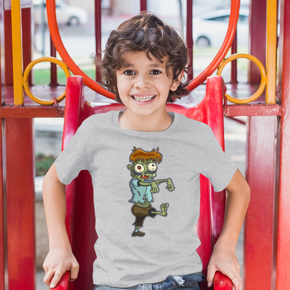 A print featuring a zombie, walking in a stereotypical movie fashion with the arms extended forward. The zombie has messy ginger hair and eyes popping out but he looks rather funny and non-threatening. A great choice for a person who is into horror movies