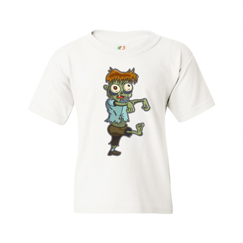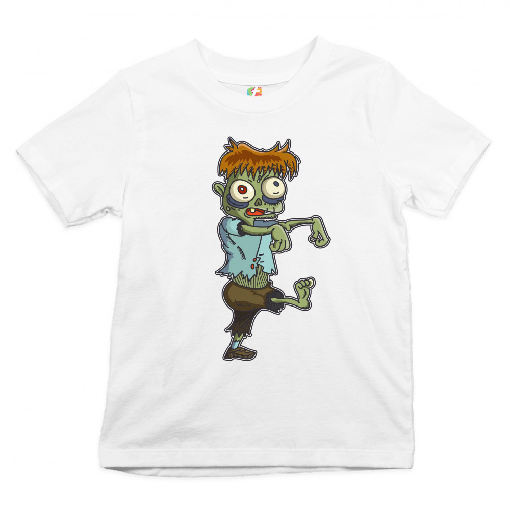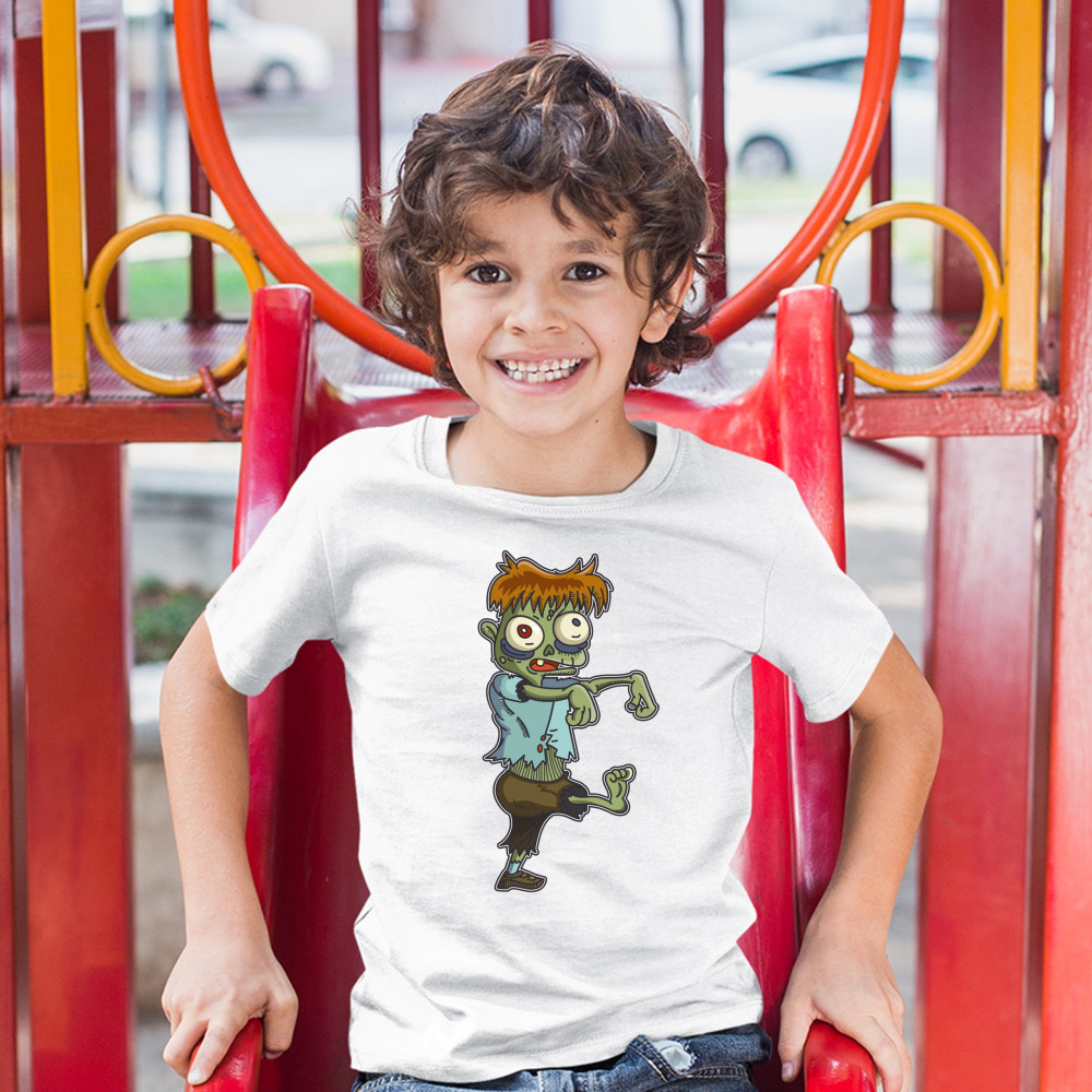 A print featuring a zombie, walking in a stereotypical movie fashion with the arms extended forward. The zombie has messy ginger hair and eyes popping out but he looks rather funny and non-threatening. A great choice for a person who is into horror movies