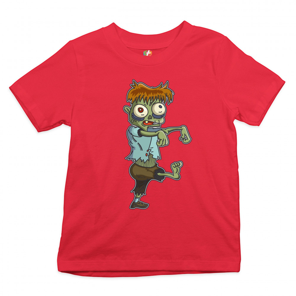 A print featuring a zombie, walking in a stereotypical movie fashion with the arms extended forward. The zombie has messy ginger hair and eyes popping out but he looks rather funny and non-threatening. A great choice for a person who is into horror movies