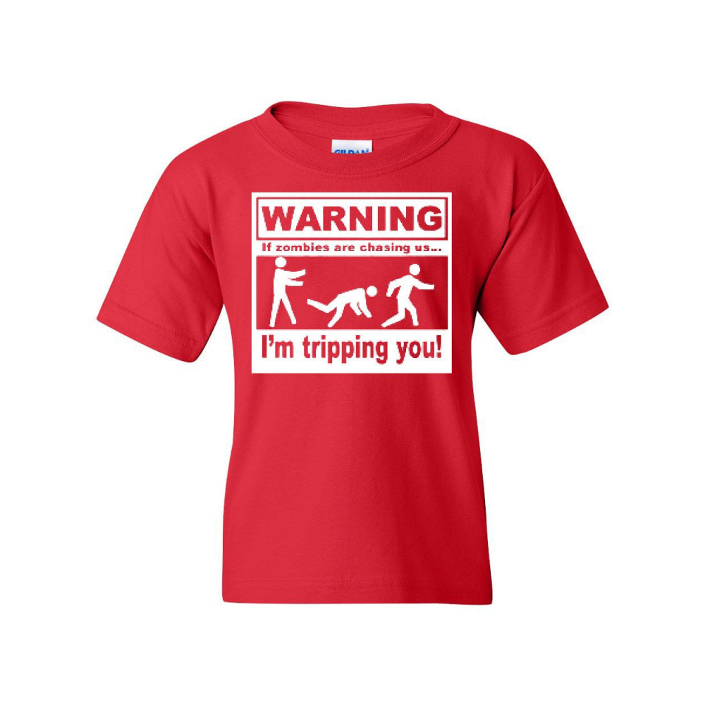WARNING IF ZOMBIES ARE CHASING US I'M TRIPPING YOU youth t-shirt red