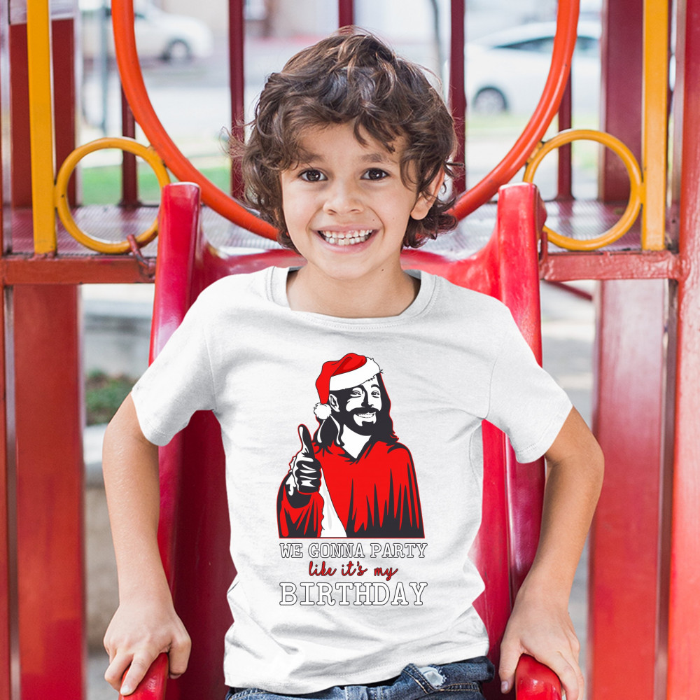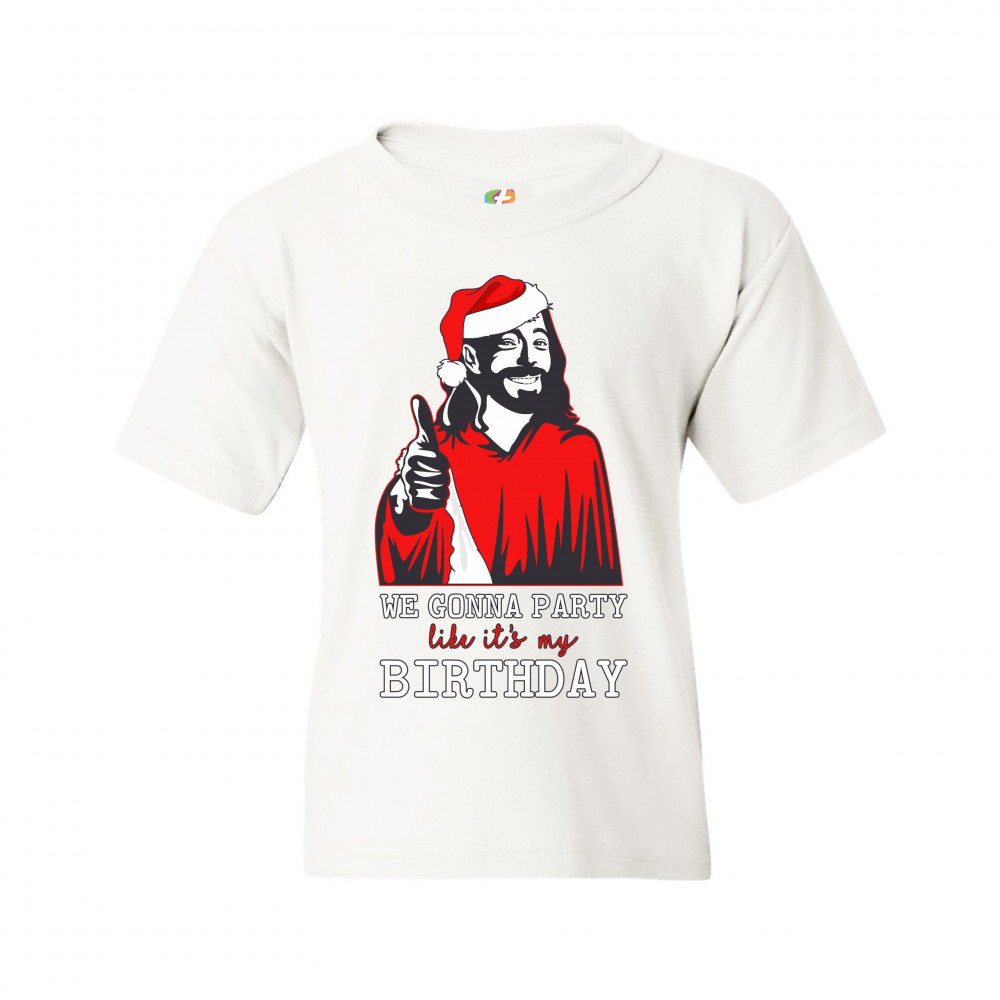 WE GONNA PARTY LIKE IT'S MY BIRTHDAY youth t-shirt jesus christ xmas kids white