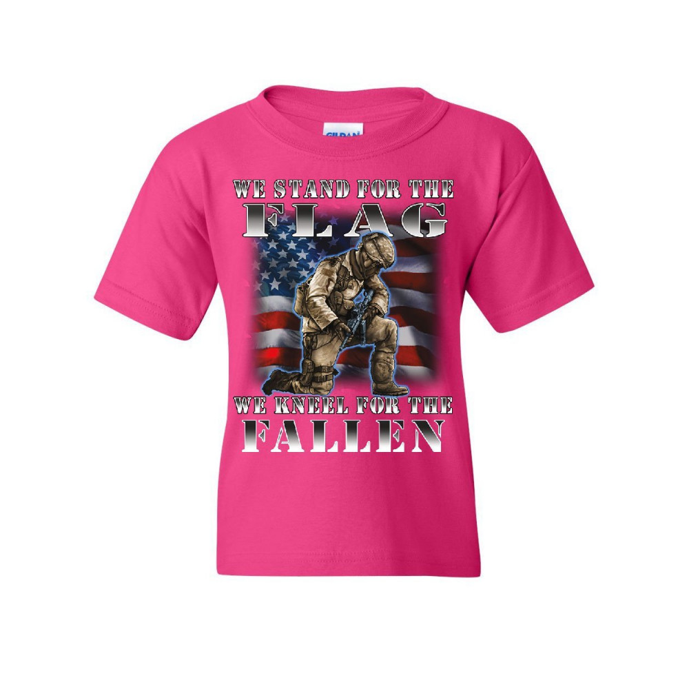 WE STAND FOR THE FLAG youth t-shirt veteran military pow mia army navy kids tee pink