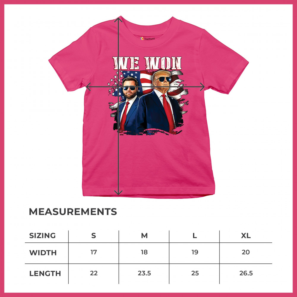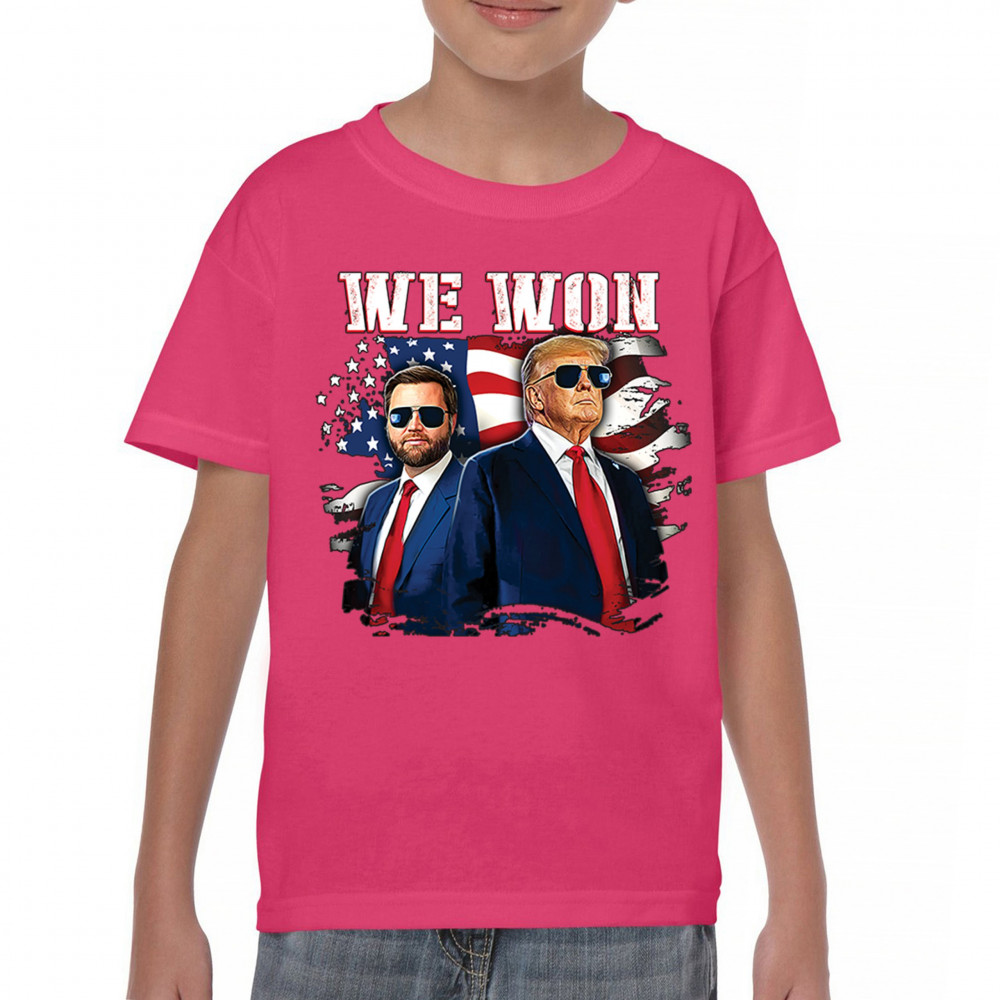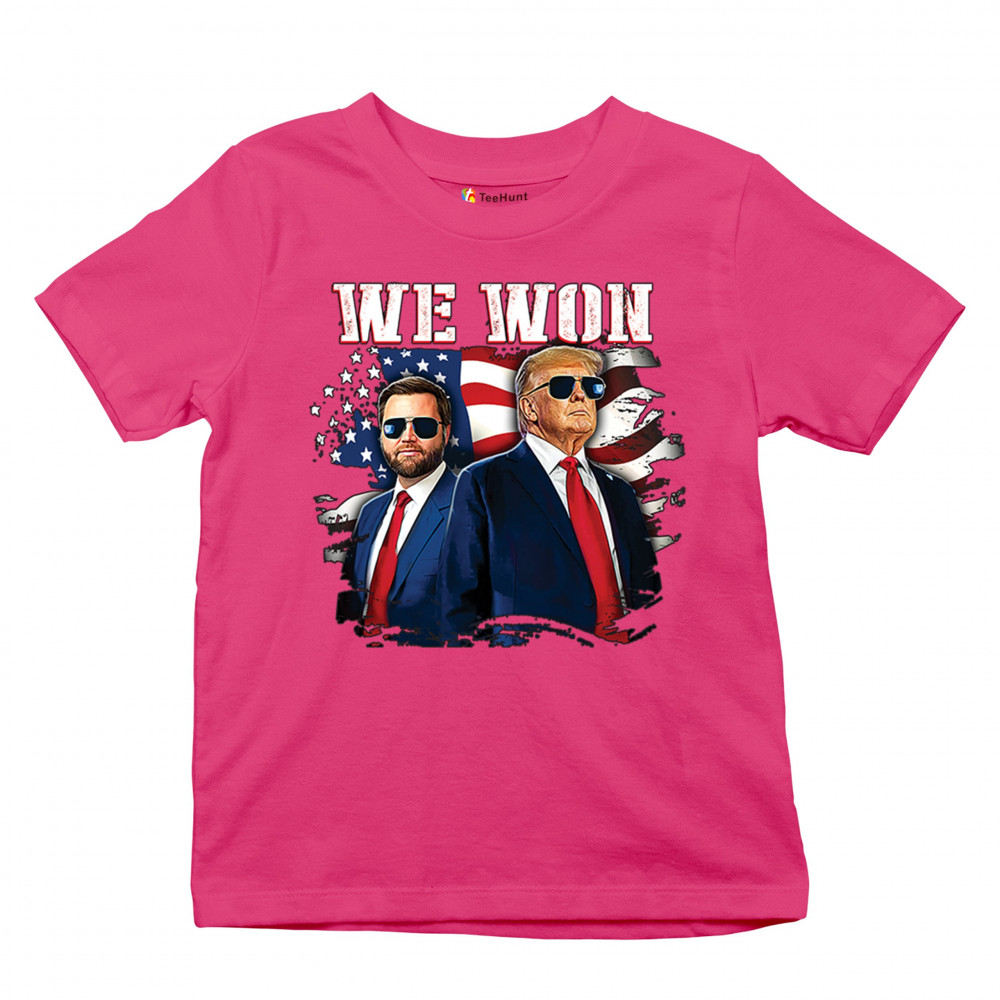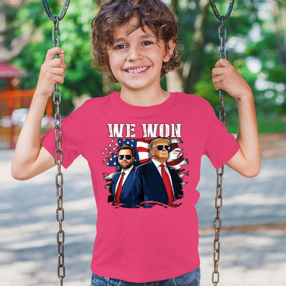 Celebrate Republican victory with this bold "We Won" design featuring Trump and patriotic flair—perfect for rallies, events, and patriotic pride.