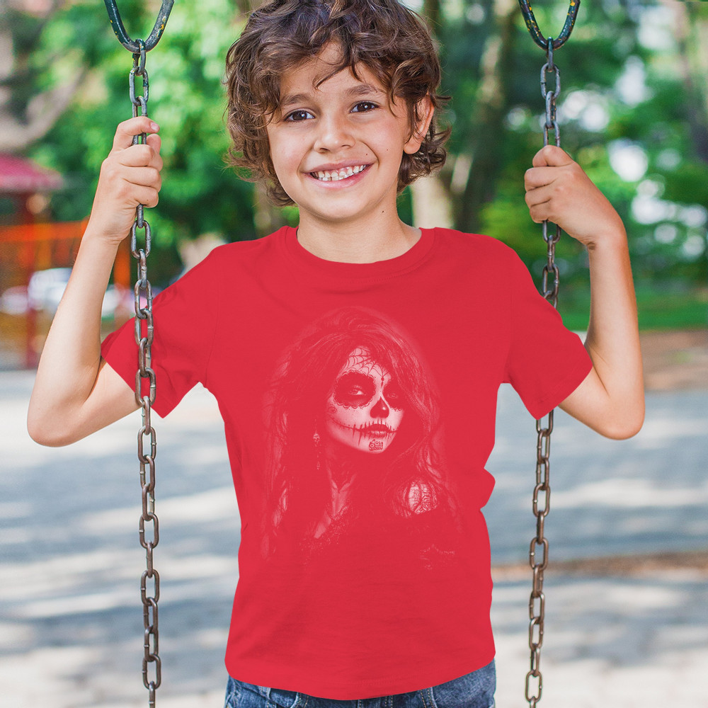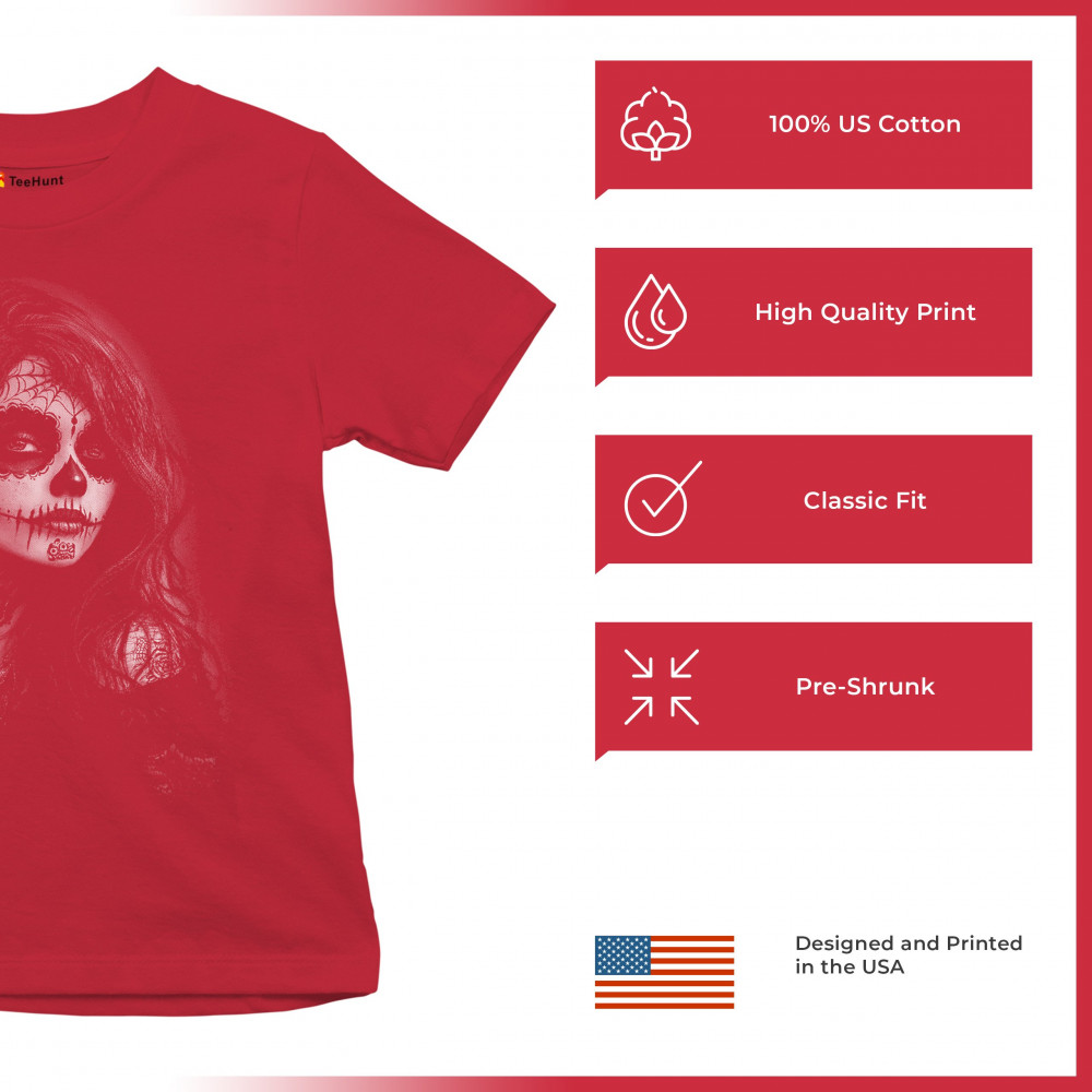 Darkly captivating and fierce, this sugar skull design features a gothic woman with intricate makeup, spiderweb crown, black lace, and flowing hair. A perfect blend of DÃa de los Muertos tradition, gothic fashion, and tattoo-style elegance. Ideal for Halloween, alt aesthetics, and lovers of haunting beauty.