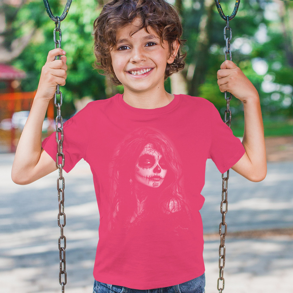 Darkly captivating and fierce, this sugar skull design features a gothic woman with intricate makeup, spiderweb crown, black lace, and flowing hair. A perfect blend of DÃa de los Muertos tradition, gothic fashion, and tattoo-style elegance. Ideal for Halloween, alt aesthetics, and lovers of haunting beauty.