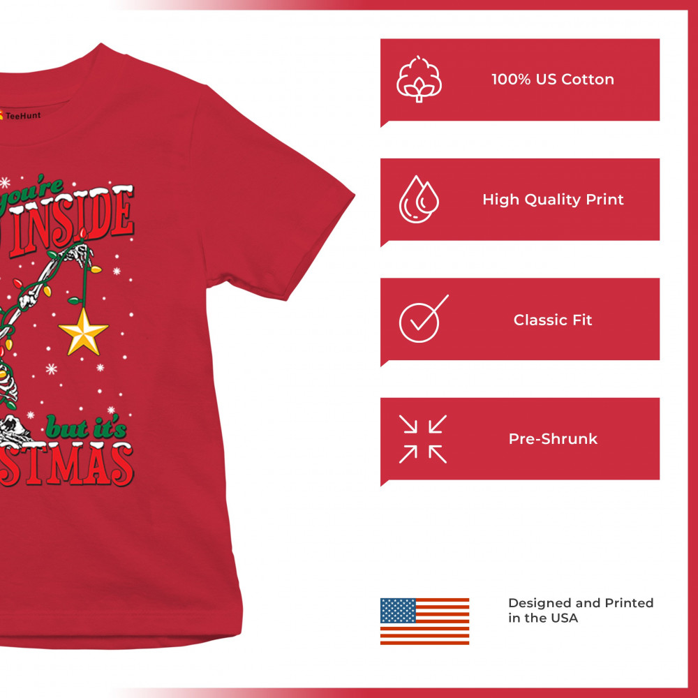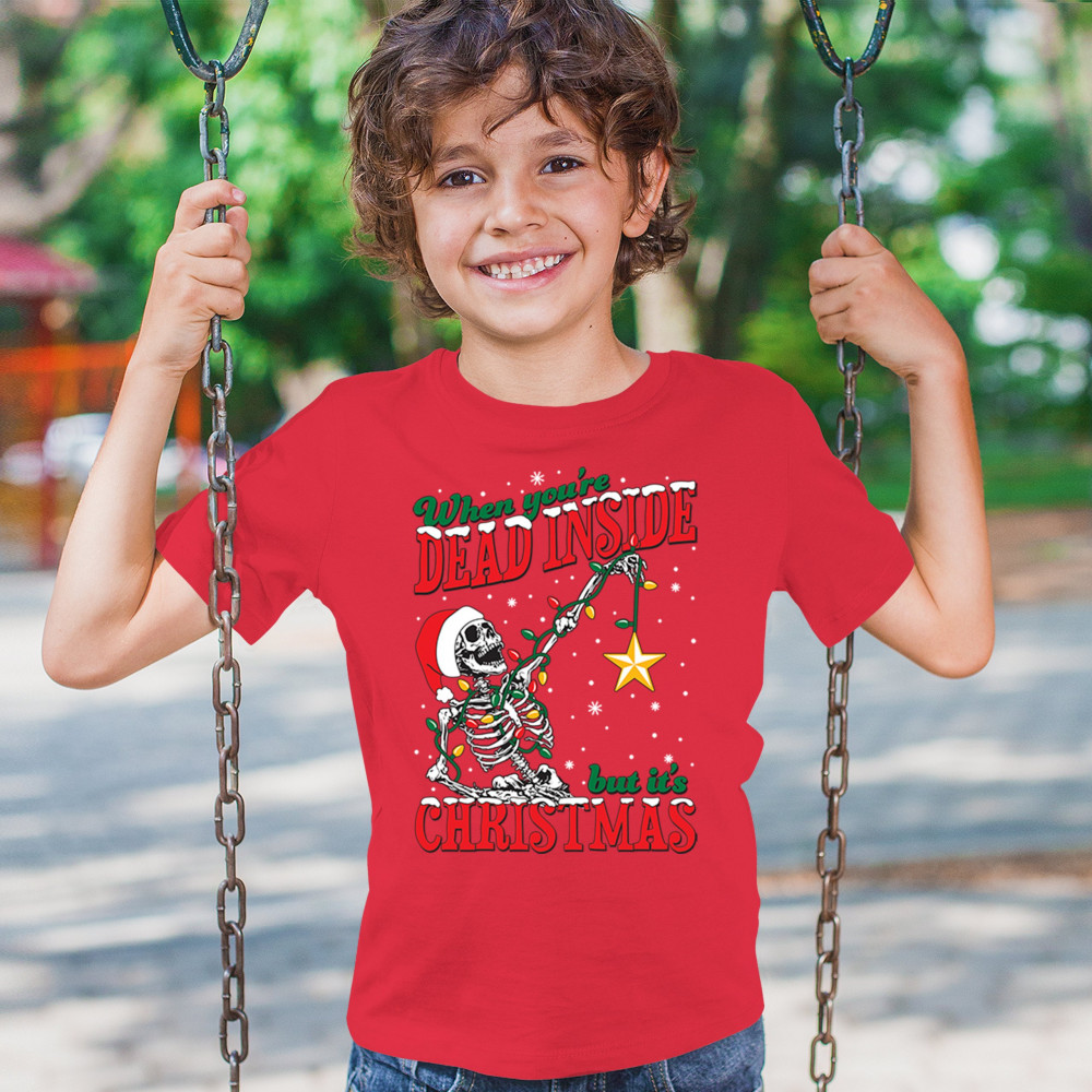 Celebrate humor and holiday spirit with the "When You're Dead Inside But It's Christmas" skeleton design. Perfect for parties and unique gifts.