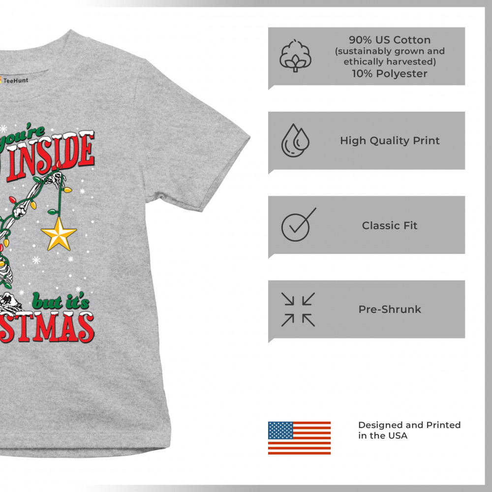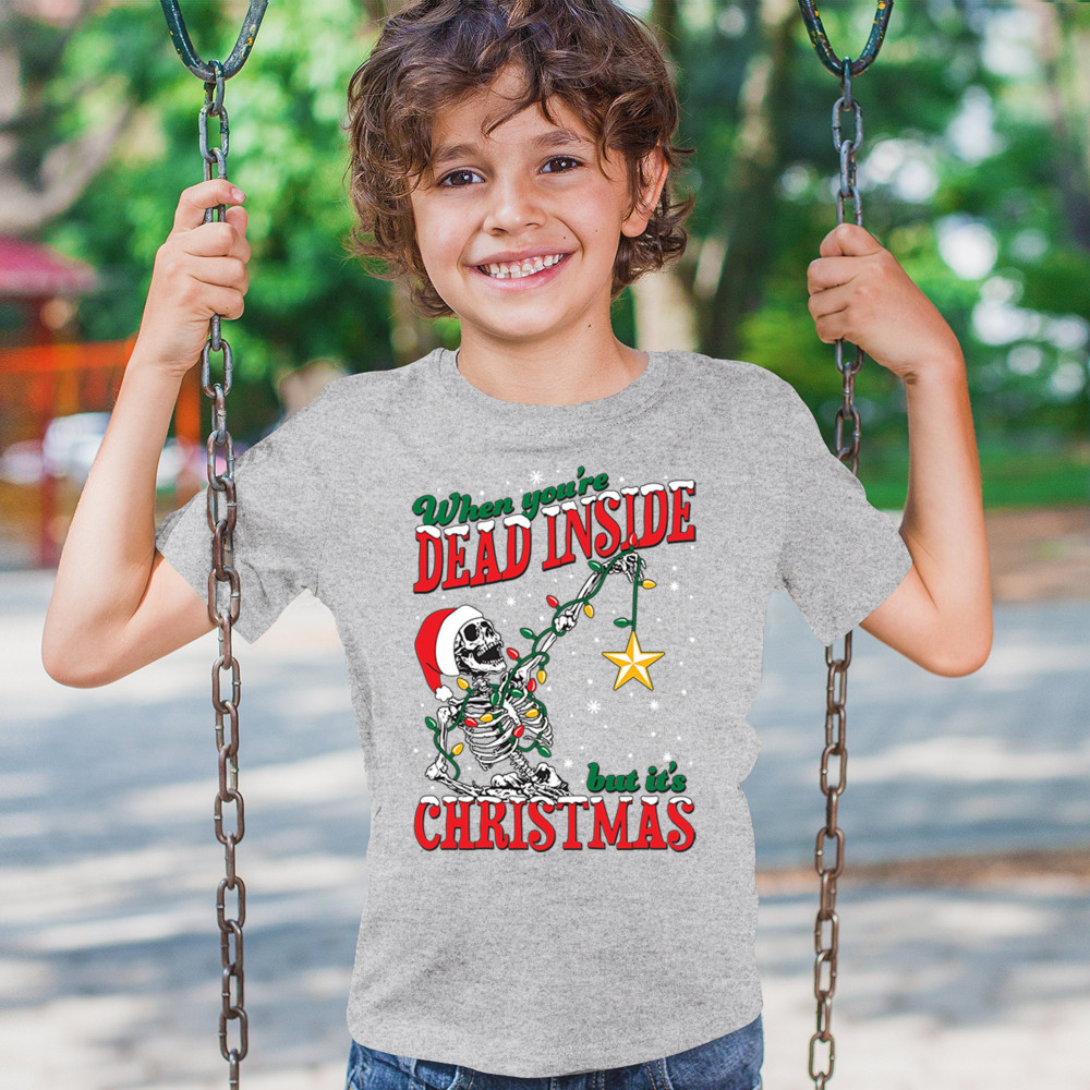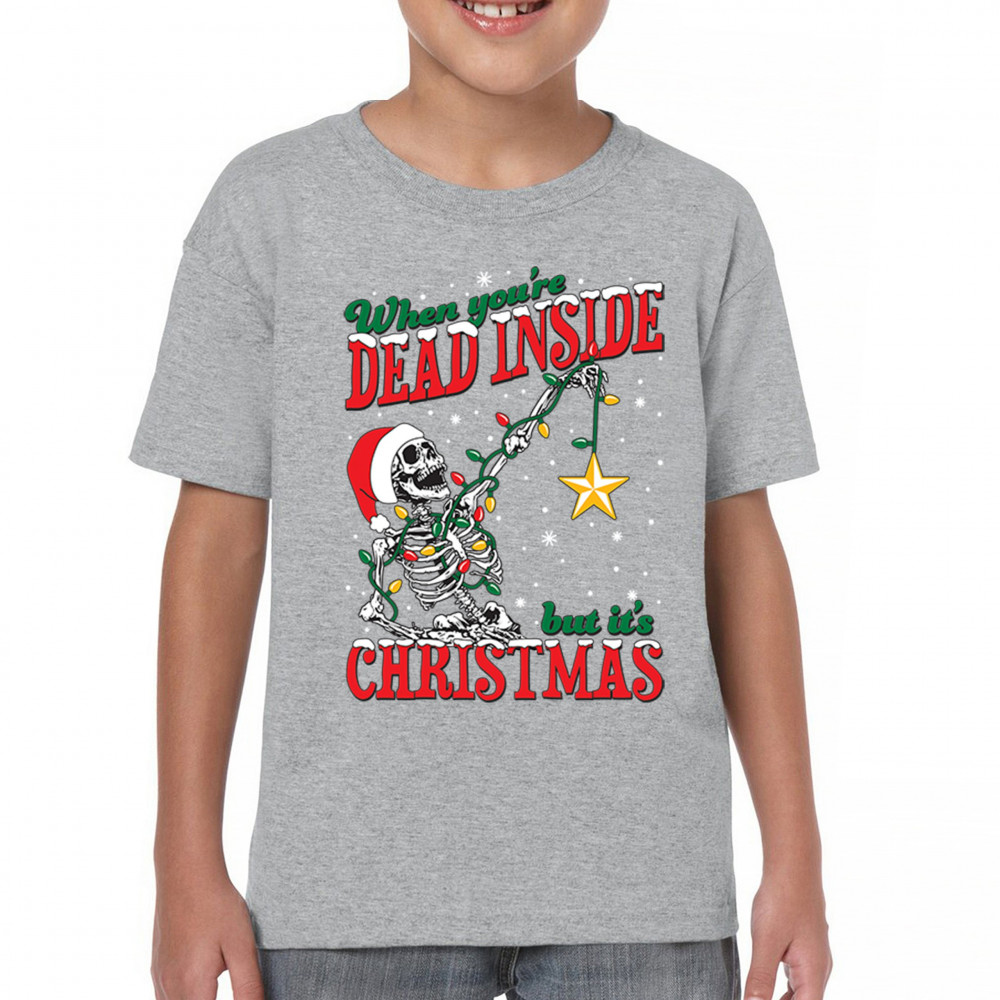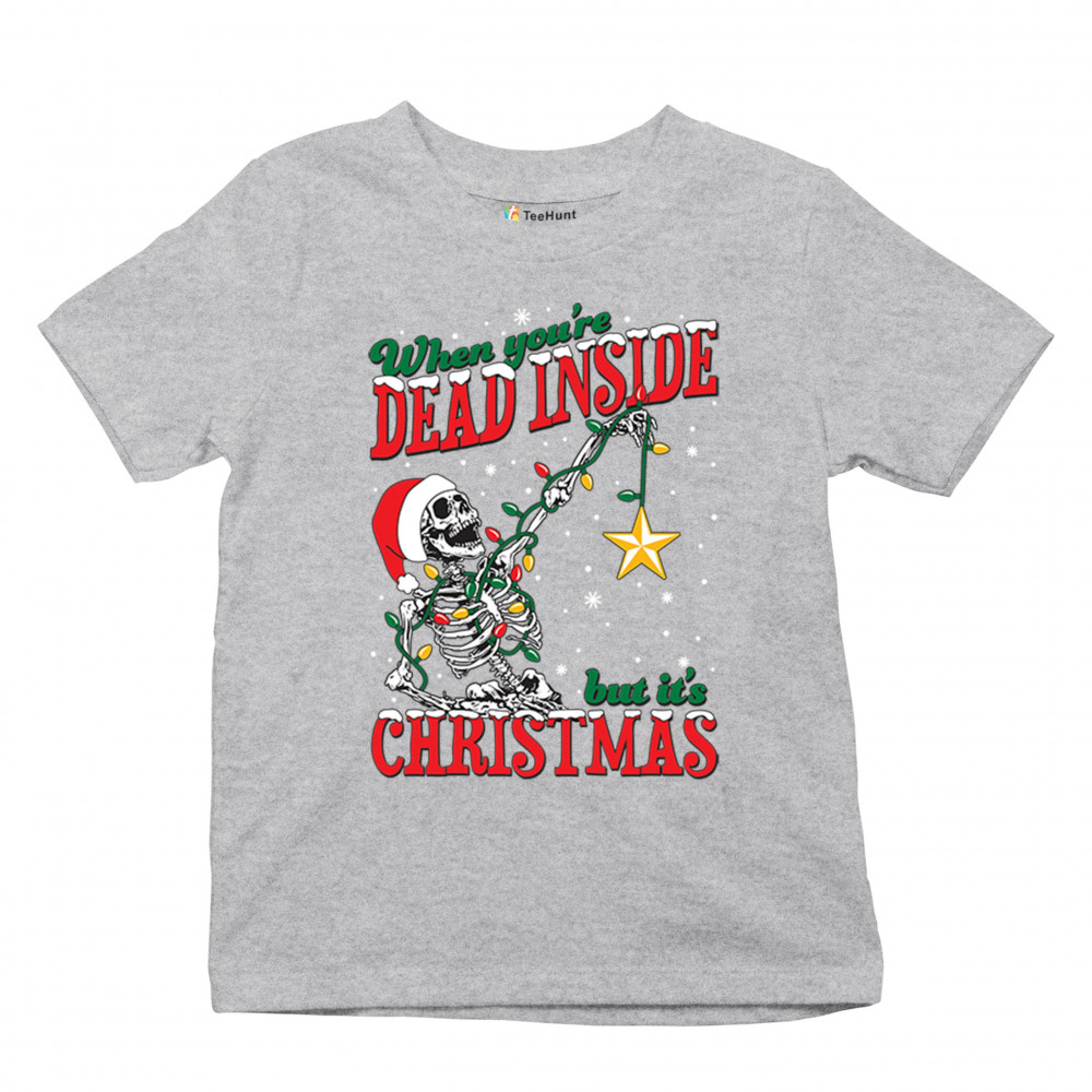 Celebrate humor and holiday spirit with the "When You're Dead Inside But It's Christmas" skeleton design. Perfect for parties and unique gifts.