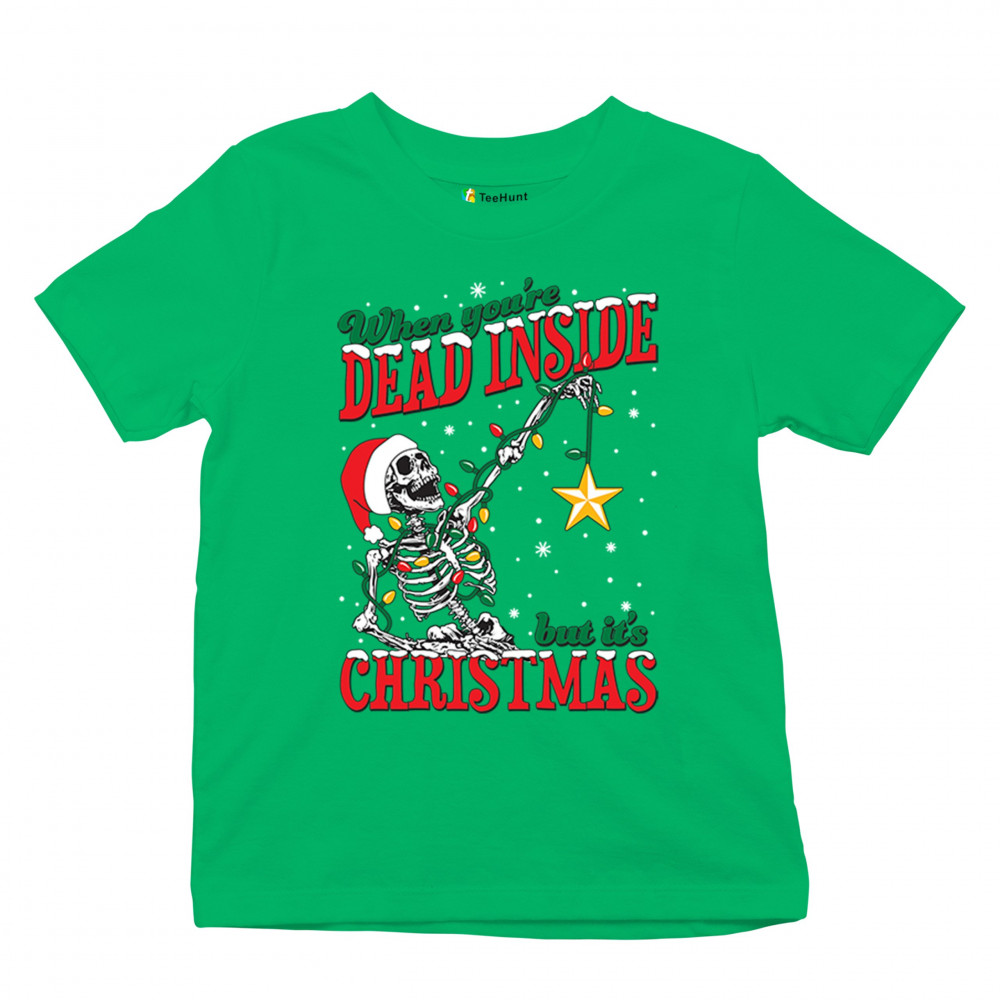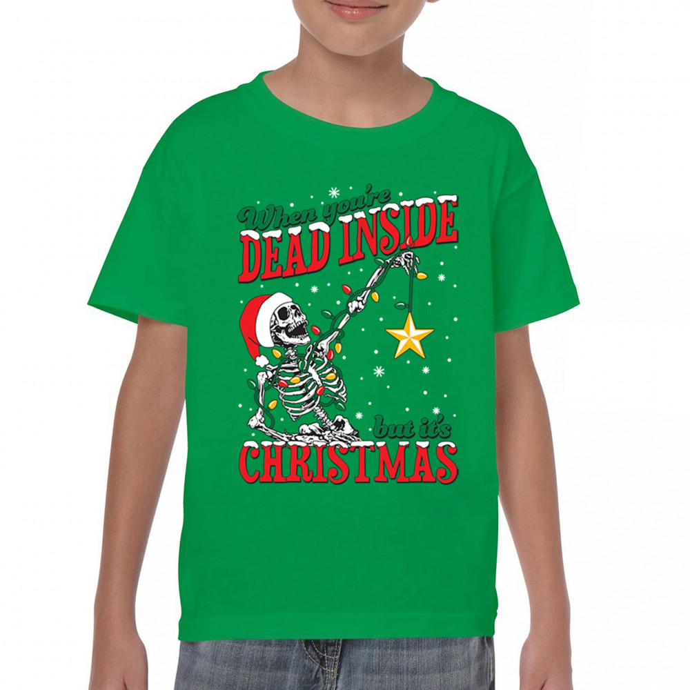 Celebrate humor and holiday spirit with the "When You're Dead Inside But It's Christmas" skeleton design. Perfect for parties and unique gifts.
