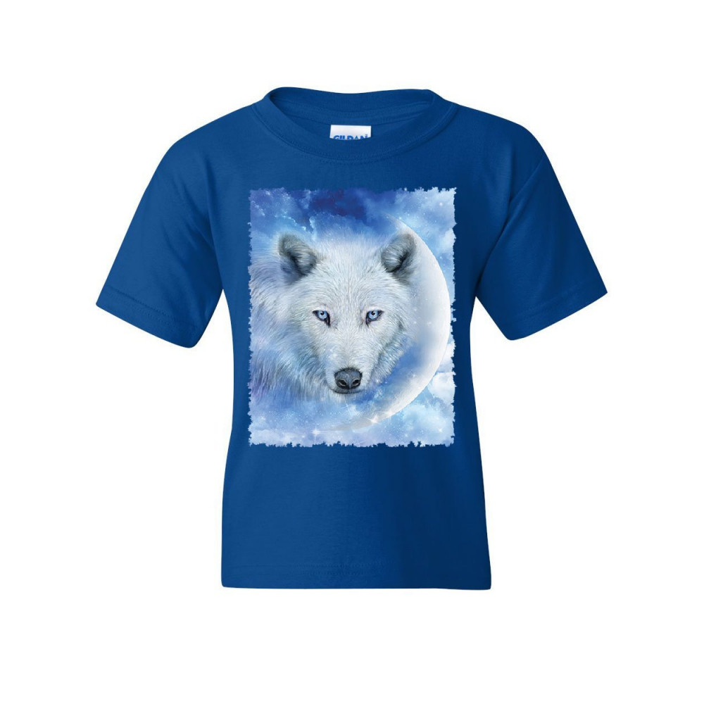 WHITE WOLF youth t-shirt wildlife animal moon howl nature wolfpack kids tee royal blue