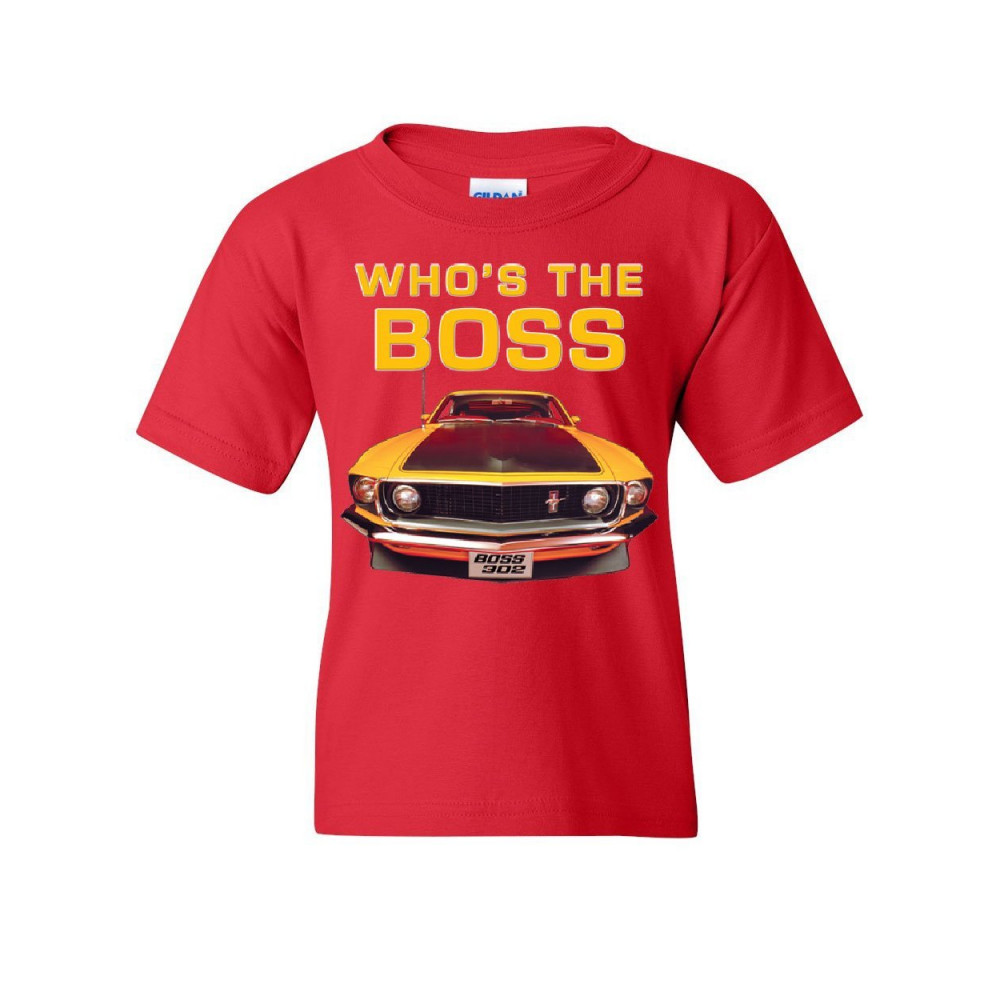 WHO'S THE BOSS? youth t-shirt ford mustang boss 302 classic muscle car kids tee red