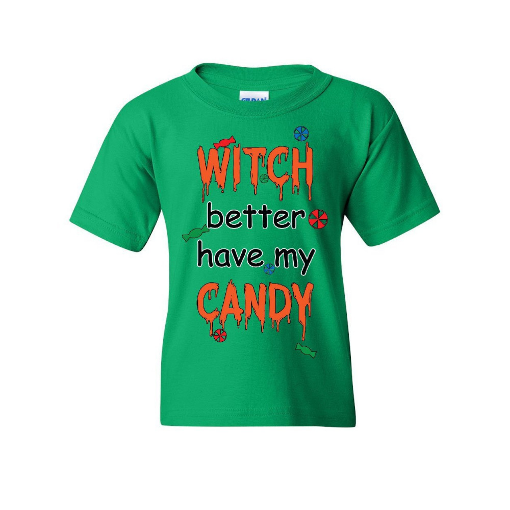 WITCH BETTER HAVE MY CANDY youth t-shirt halloween trick or treating kids tee green