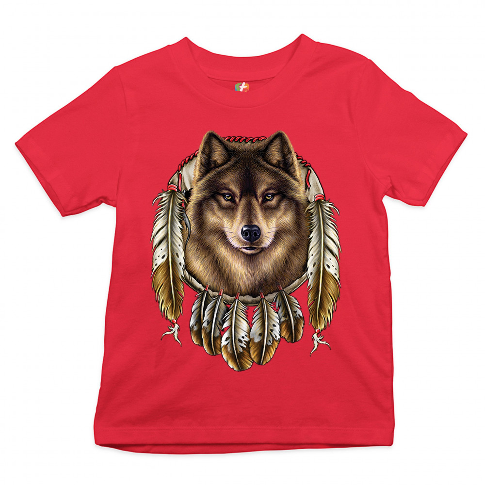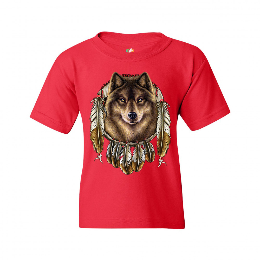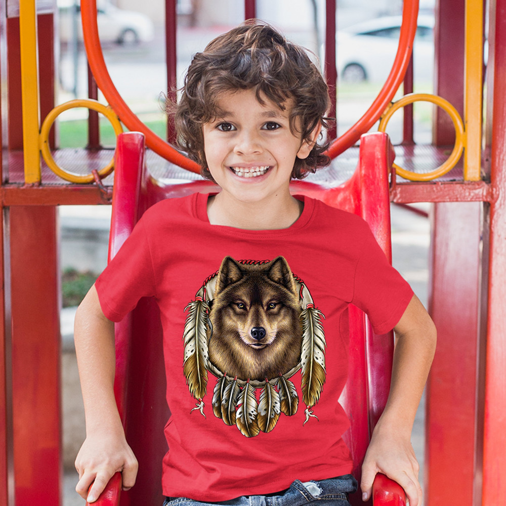 WOLF SPIRIT youth t-shirt native american dreamcatcher indigenous kids red