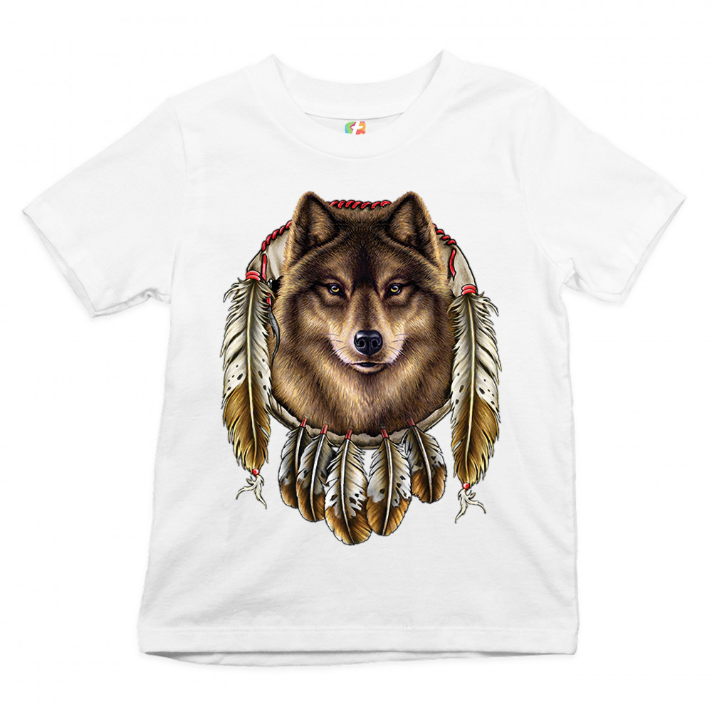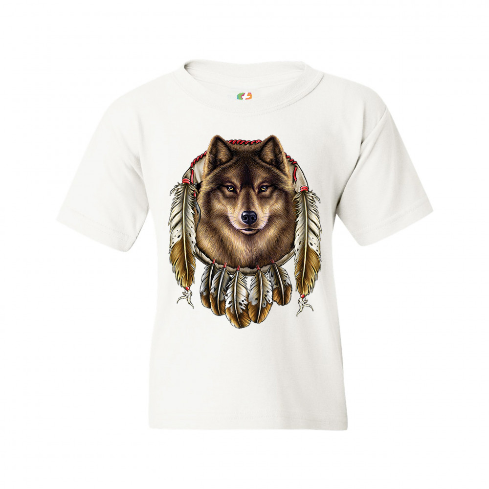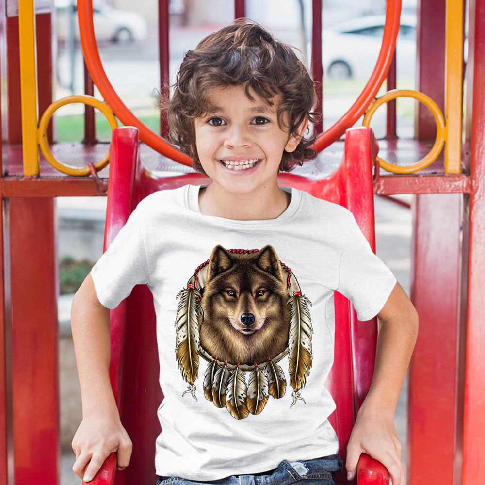 WOLF SPIRIT youth t-shirt native american dreamcatcher indigenous kids white