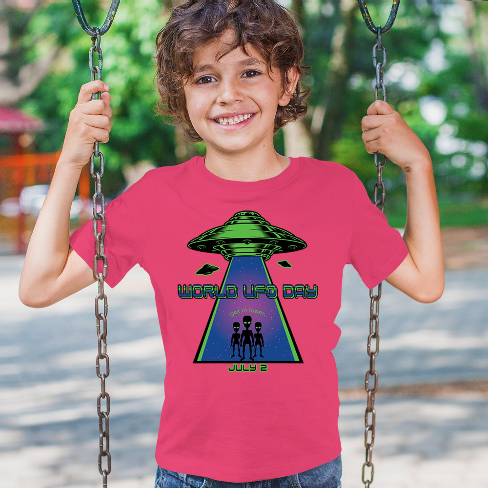Join the celebration of World UFO Day with this unique design, featuring a detailed UFO beaming up three cheerful aliens with the phrase "Get in, loser." Perfect for those who are fascinated by the unknown and have a sense of humor about extraterrestrial life. Whether you're attending a UFO event, meeting with fellow enthusiasts, or just want to express your quirky style, this design is a must-have. Embrace the spirit of curiosity and fun with this eye-catching design for July 2nd.