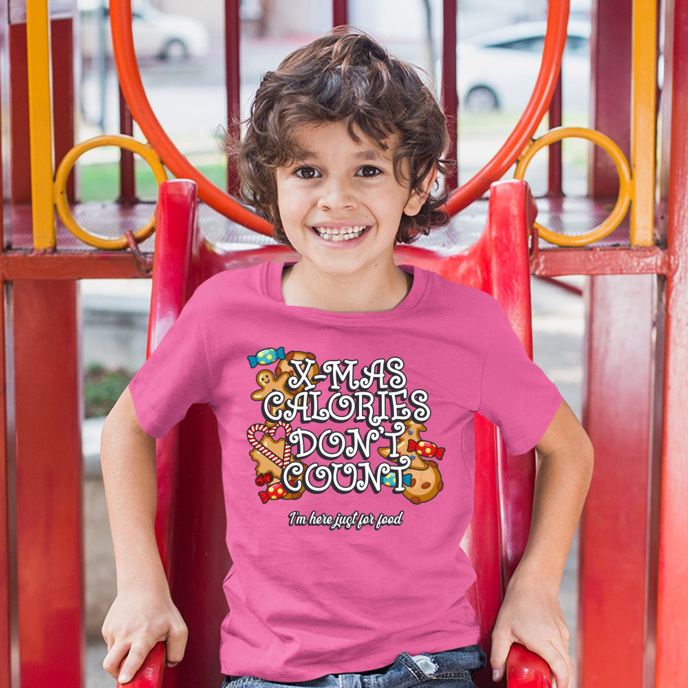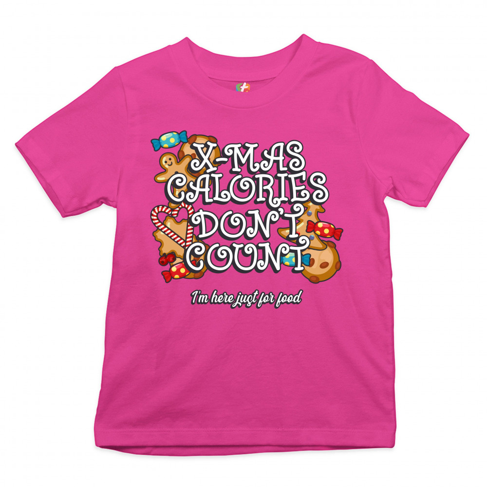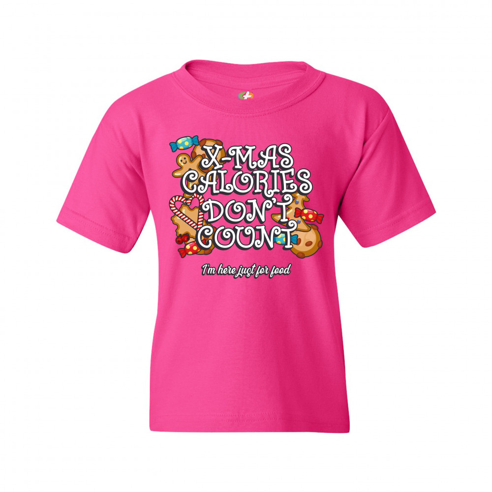 X-MAS CALORIES DON'T COUNT youth t-shirt merry christmas naughty or nice kids pink