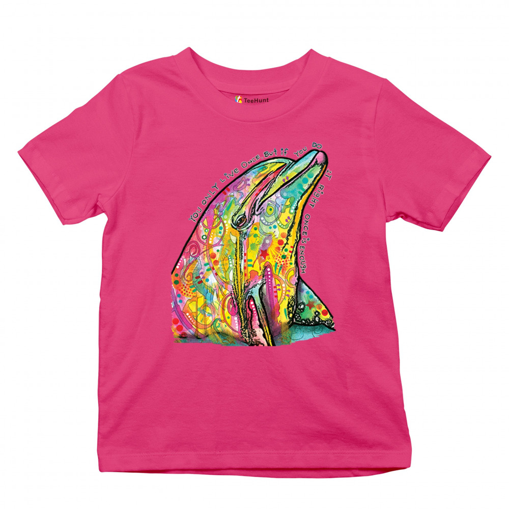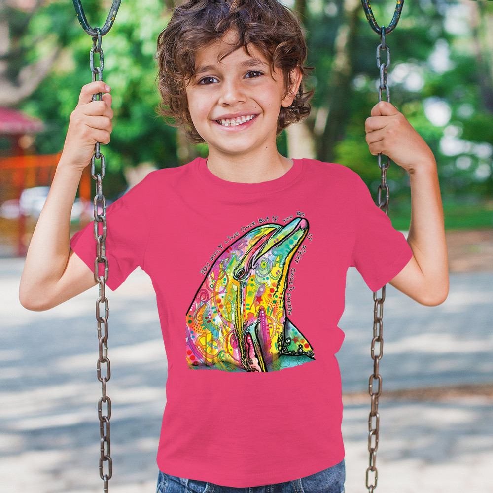 YOU ONLY LIVE ONCE youth t-shirt cute neon dolphin dean russo yolo kids pink