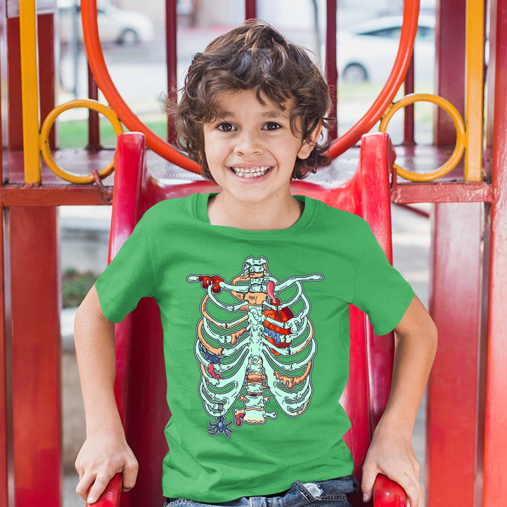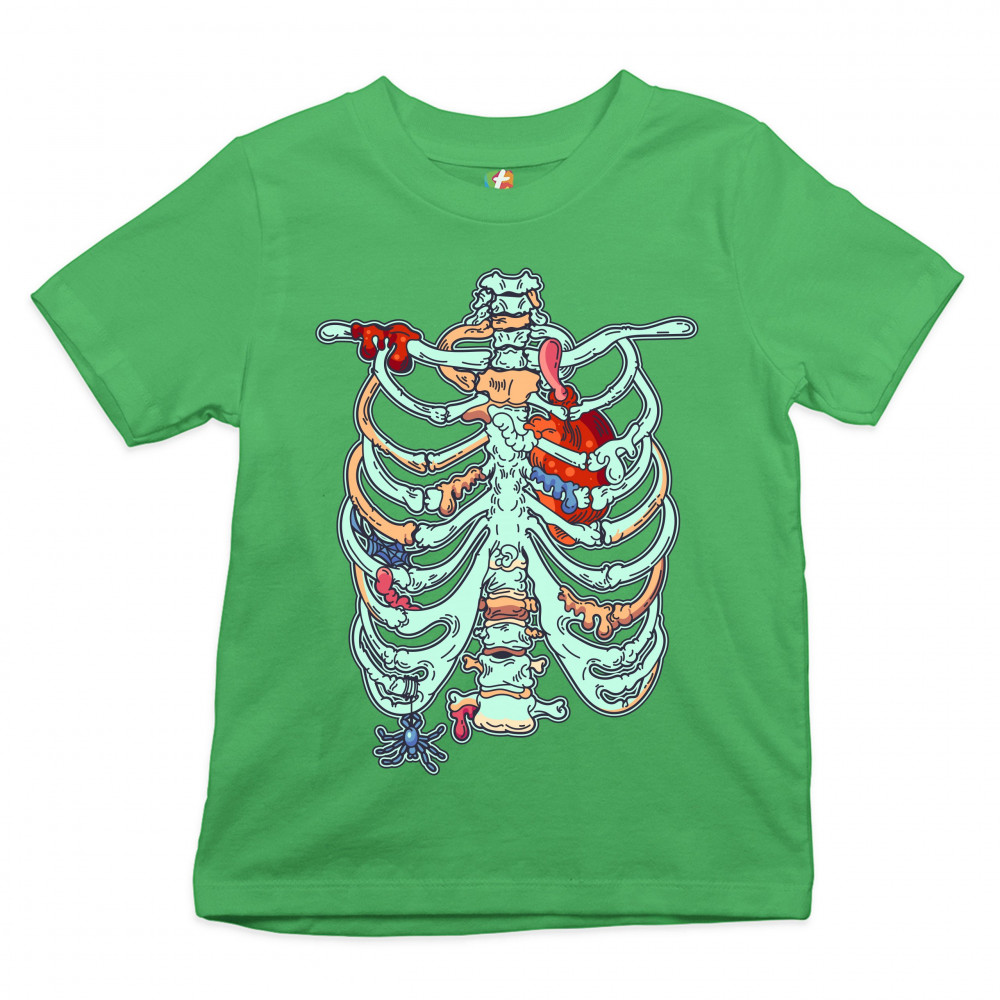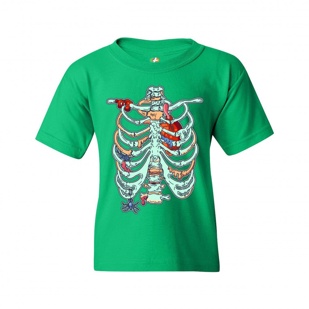 ZOMBIE RIB CAGE youth t-shirt all hallows' eve spooky halloween skeleton kids green