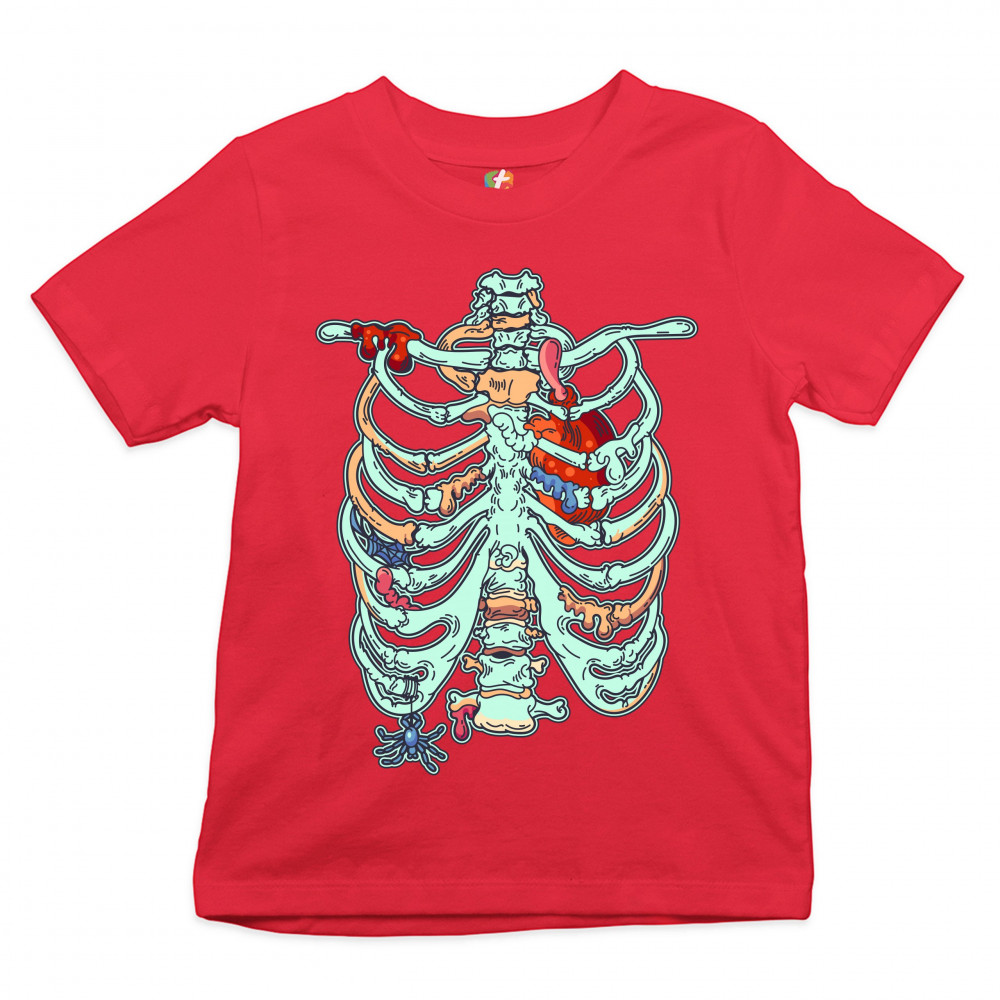 ZOMBIE RIB CAGE youth t-shirt all hallows' eve spooky halloween skeleton kids red
