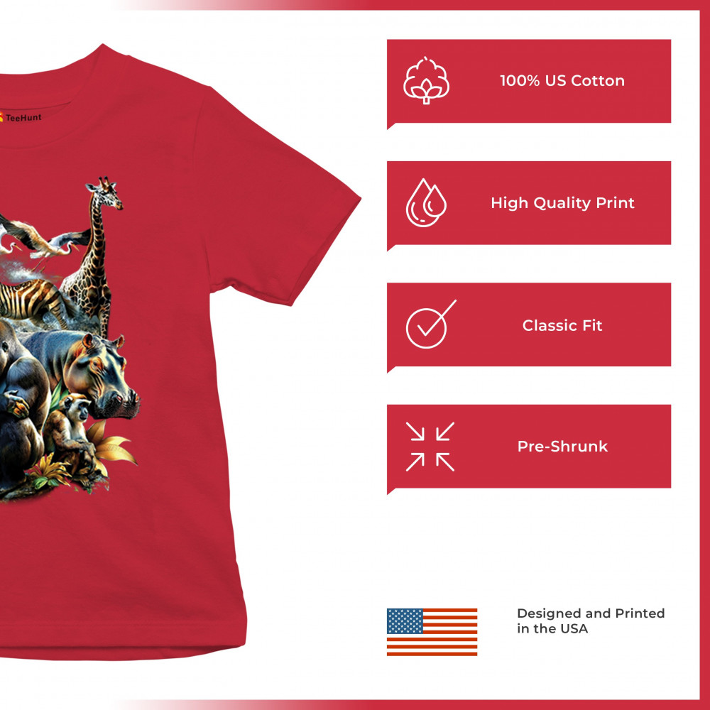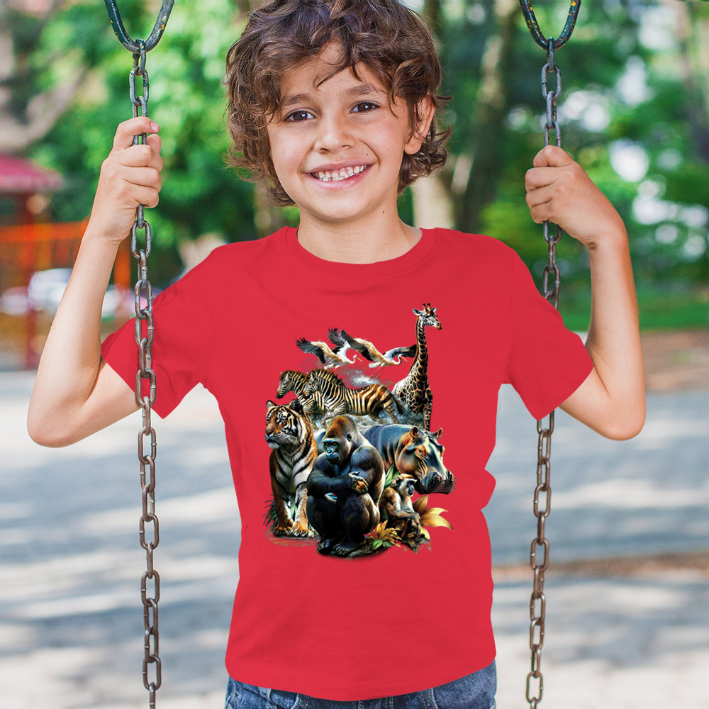 Packed with fierce energy and vibrant color, this wildlife design features a jungle coalition of gorilla, tiger, monkey, zebra, giraffe, hippo, and birds. A powerful tribute to animal beauty, biodiversity, and nature's harmony. Perfect for jungle tour enthusiasts, zoo visitors, or anyone passionate about wild conservation and stunning creature art.