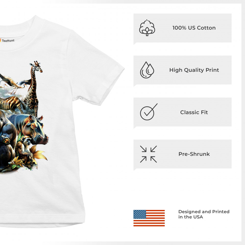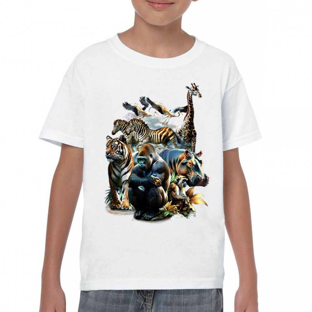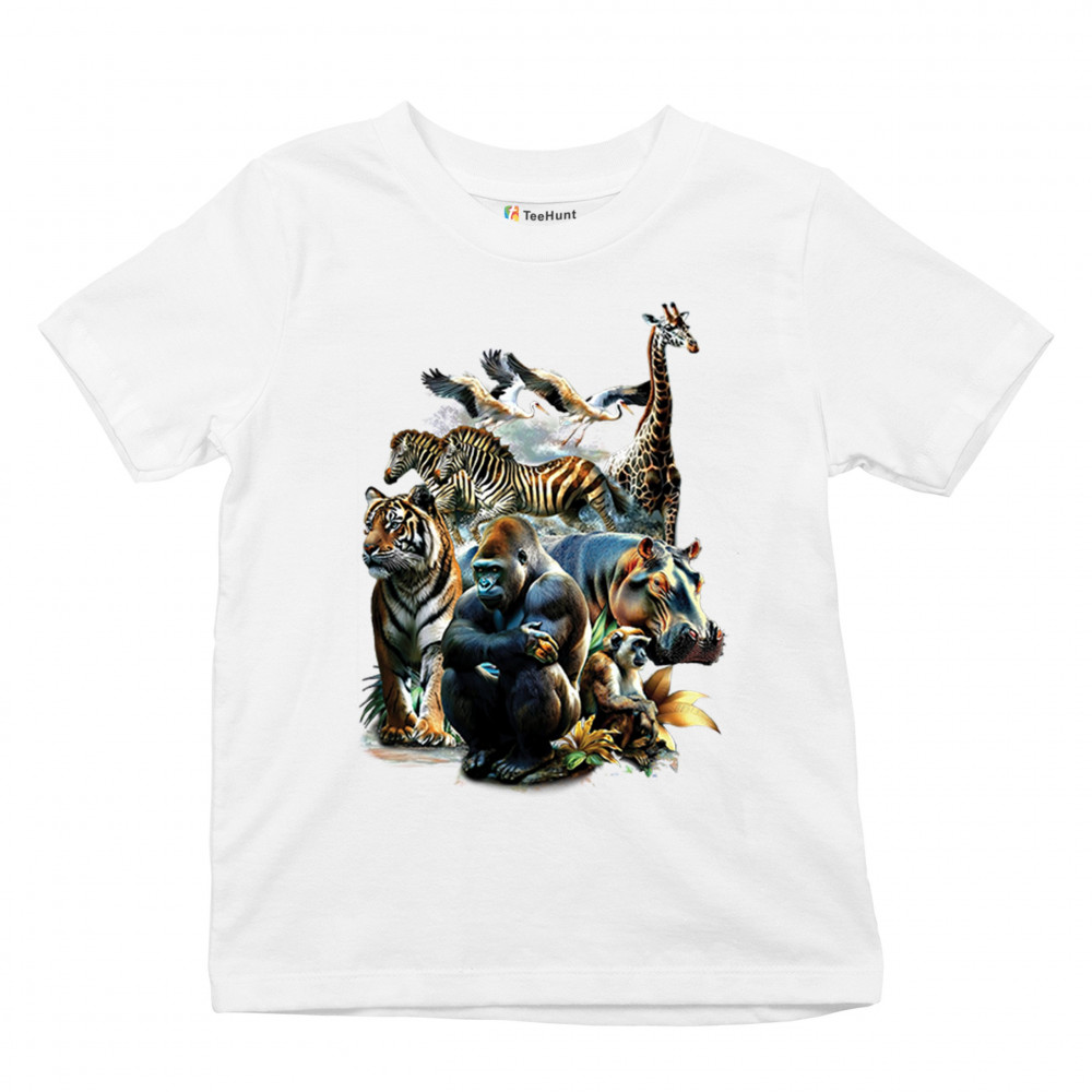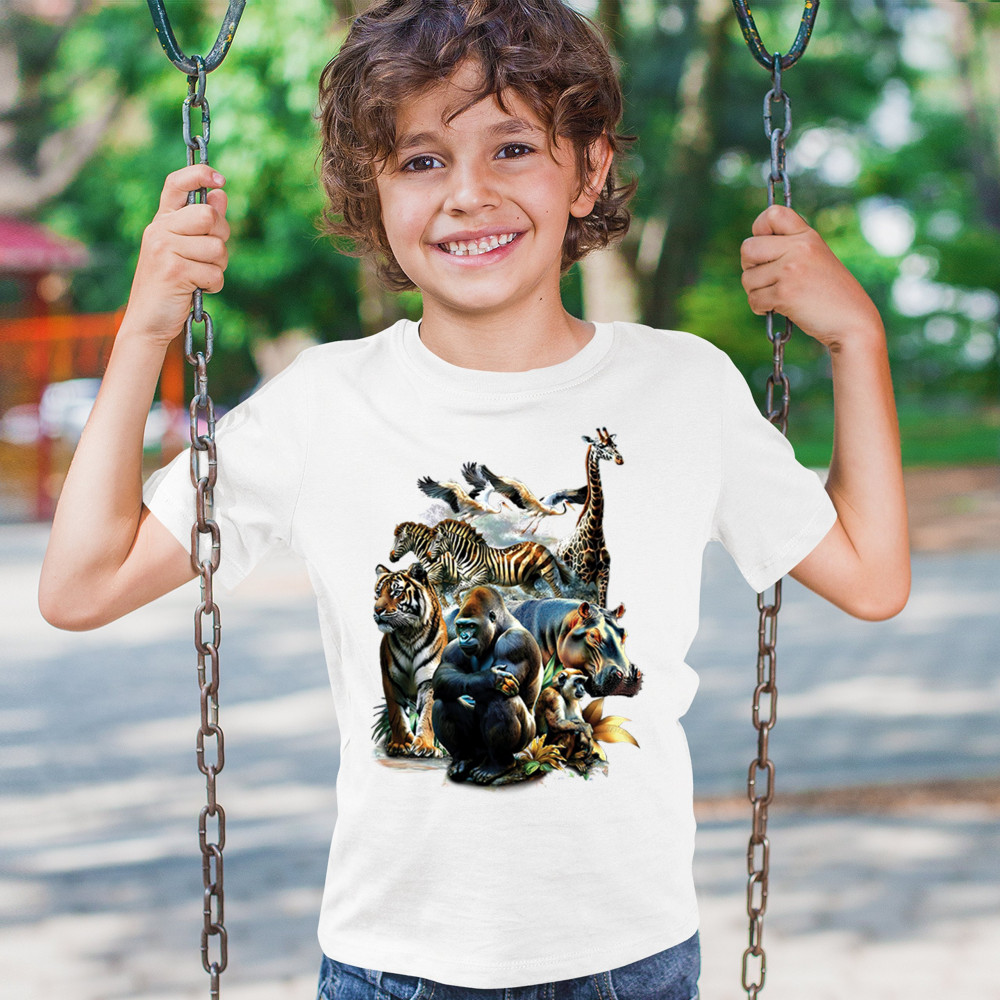 Packed with fierce energy and vibrant color, this wildlife design features a jungle coalition of gorilla, tiger, monkey, zebra, giraffe, hippo, and birds. A powerful tribute to animal beauty, biodiversity, and nature's harmony. Perfect for jungle tour enthusiasts, zoo visitors, or anyone passionate about wild conservation and stunning creature art.
