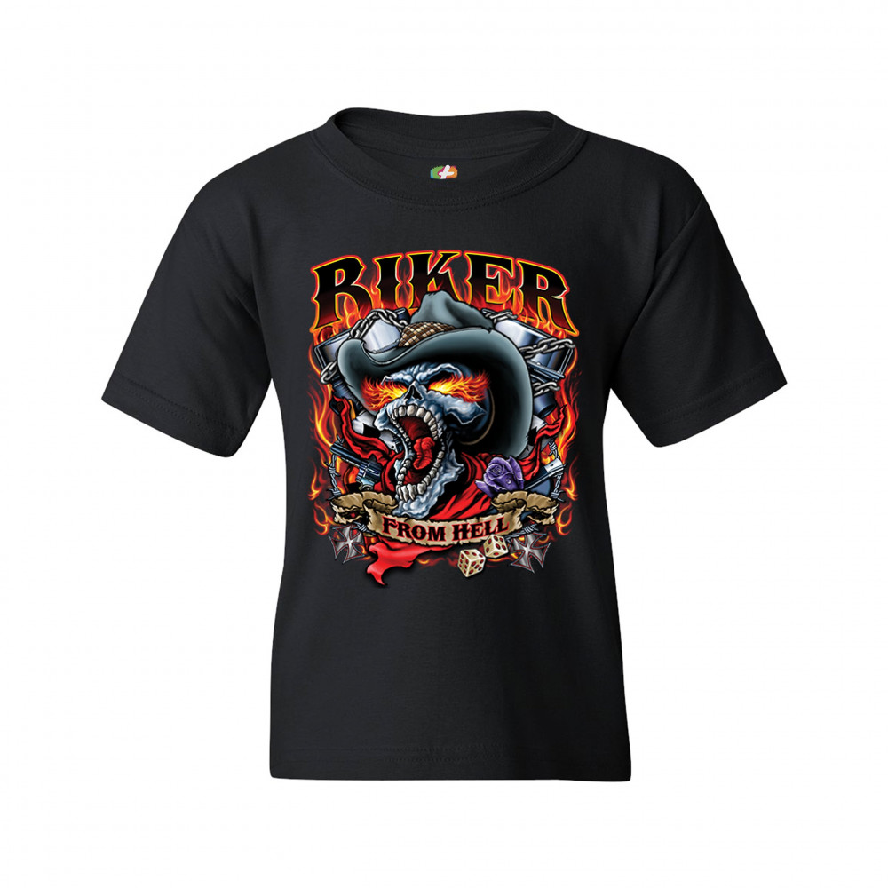 BIKER FROM HELL youth t-shirt ride or die skeleton outlaw route 66 kids black
