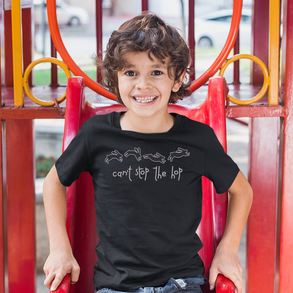 CAN'T STOP THE HOP youth t-shirt happy easter funny hopping rabbits kids black