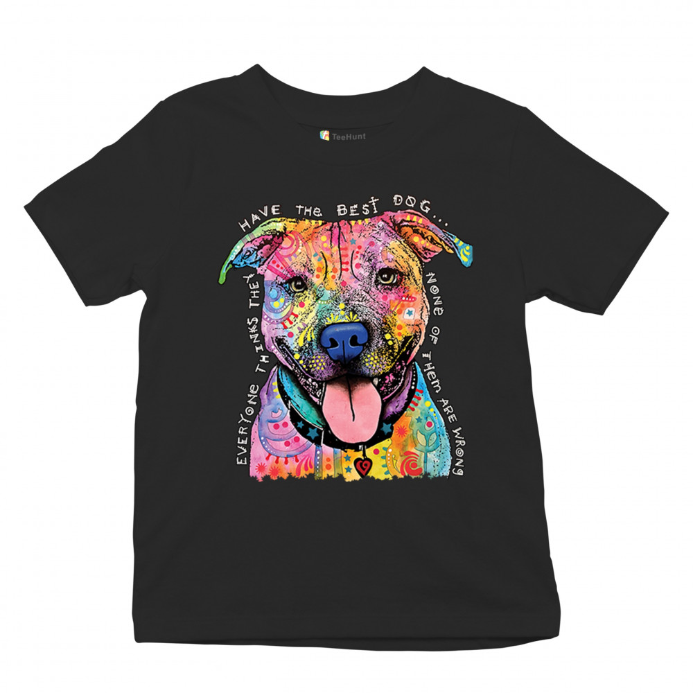 DEAN RUSSO COLORFUL PIT BULL youth t-shirt everyone has best dogs kids black