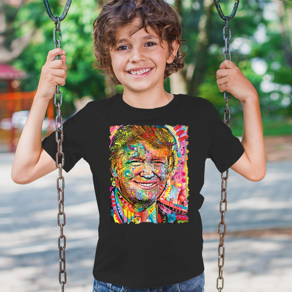 DEAN RUSSO COLORFUL TRUMP youth t-shirt 45 american president 2024 kids black