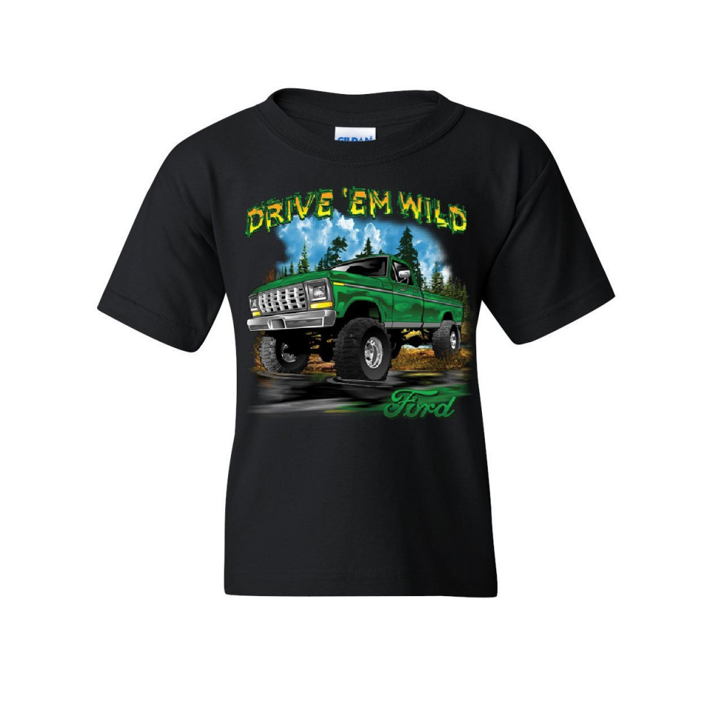DRIVE 'EM WILD youth t-shirt ford pickup trucks f-150 offroad mud ride kids tee black