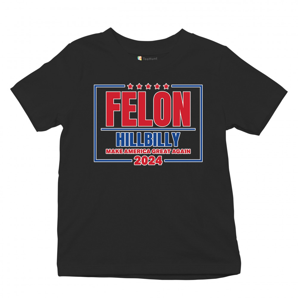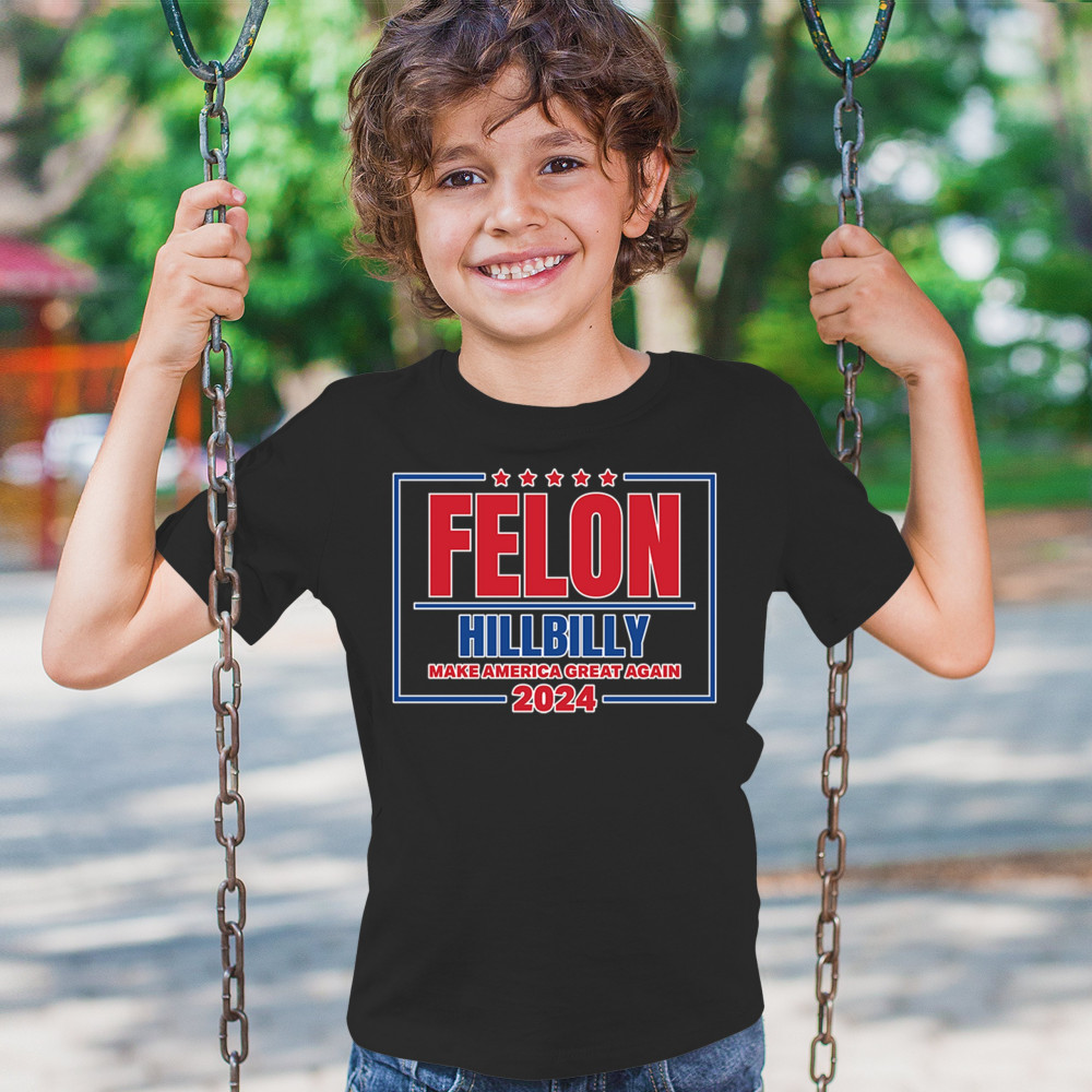 FELON HILLBILLY TRUMP MAGA 2024 youth t-shirt 47 president vote red usa kids black