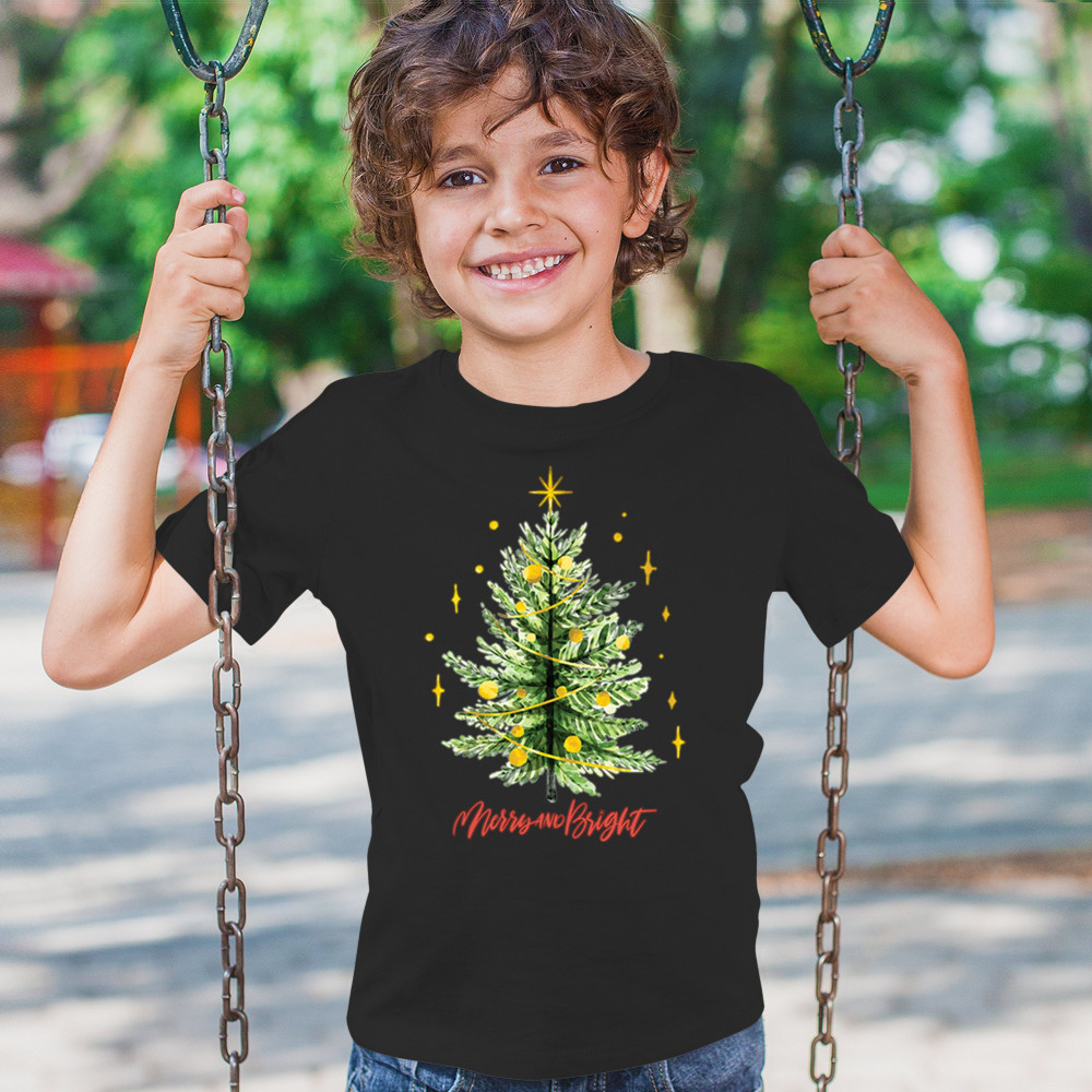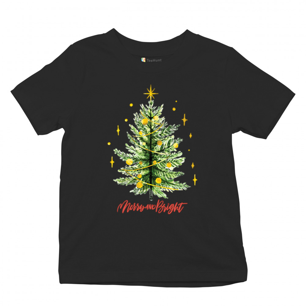 Festive “Merry and Bright†shirt featuring a joyful Christmas tree. Perfect for holiday gatherings, office parties, or Secret Santa gifts.