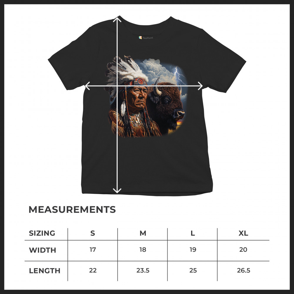 This powerful design features a Native American elder in traditional dress and feathered headdress beside a noble bison. Framed by a stormy sky and lightning, the art symbolizes tribal pride, spiritual harmony, ancestral strength, and a deep connection to nature’s raw energy.