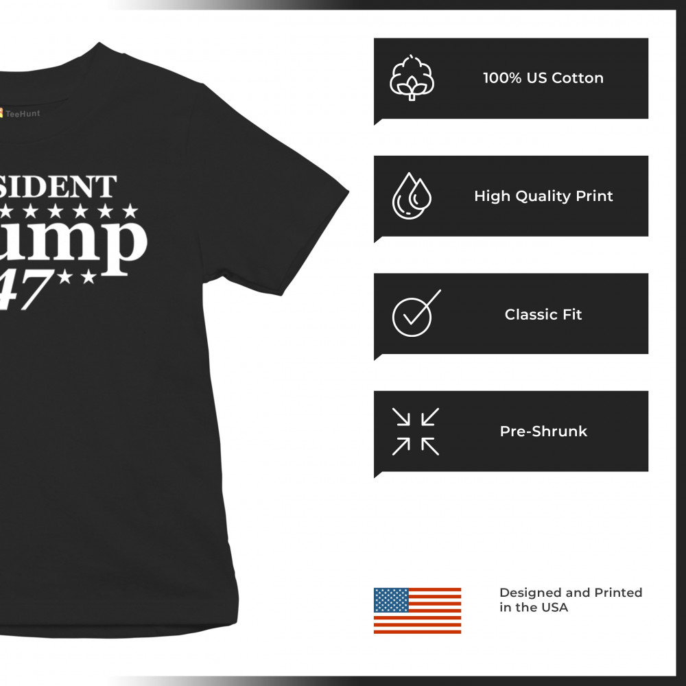 Proudly show support with the "President Trump 47" design, perfect for patriots backing Donald J. Trump as the 47th President and the America First vision.