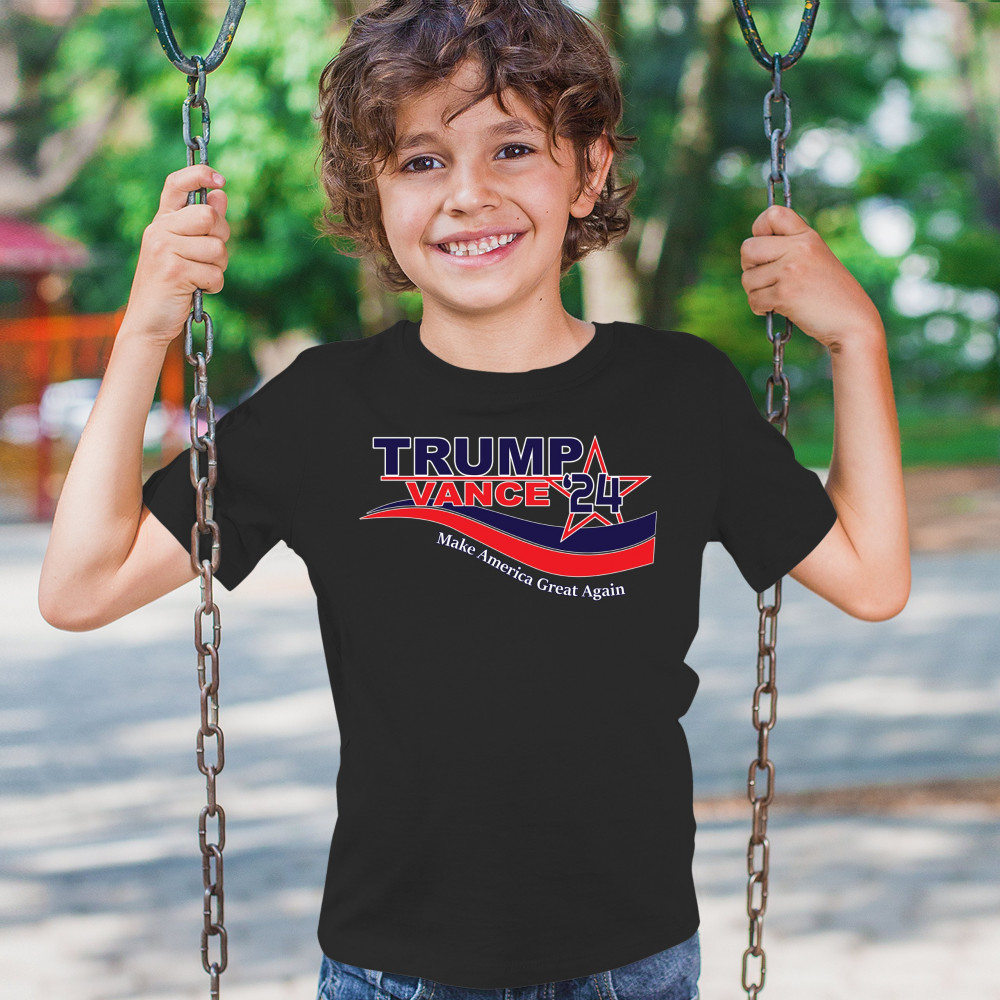 Show your support for Trump-Vance 2024 with this bold design featuring "Make America Great Again." Perfect for rallies and patriotic events.